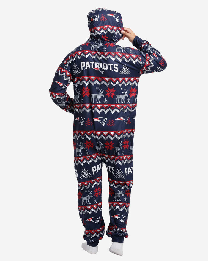Get some matching family pajamas and dress to impress this holiday season! You won't want to miss these onesie team pajamas! These men's and women's PJ's are comfortable and show off your team spirit in the form of some sweet one piece jammies. Introducing the New England Patriots Ugly Pattern One Piece Pajamas! Don't forget to take your holiday photo with the whole family wearing matching Christmas pajamas!