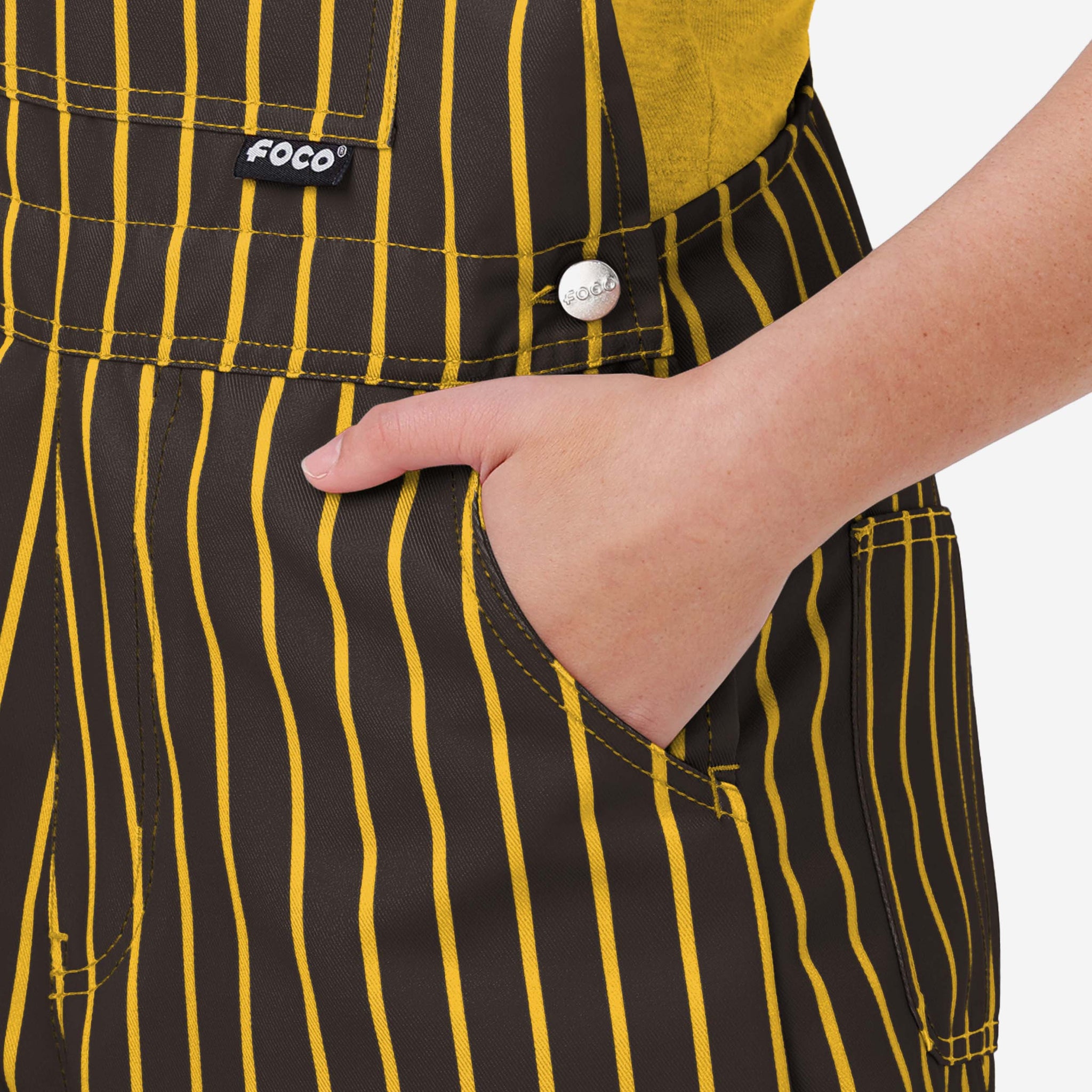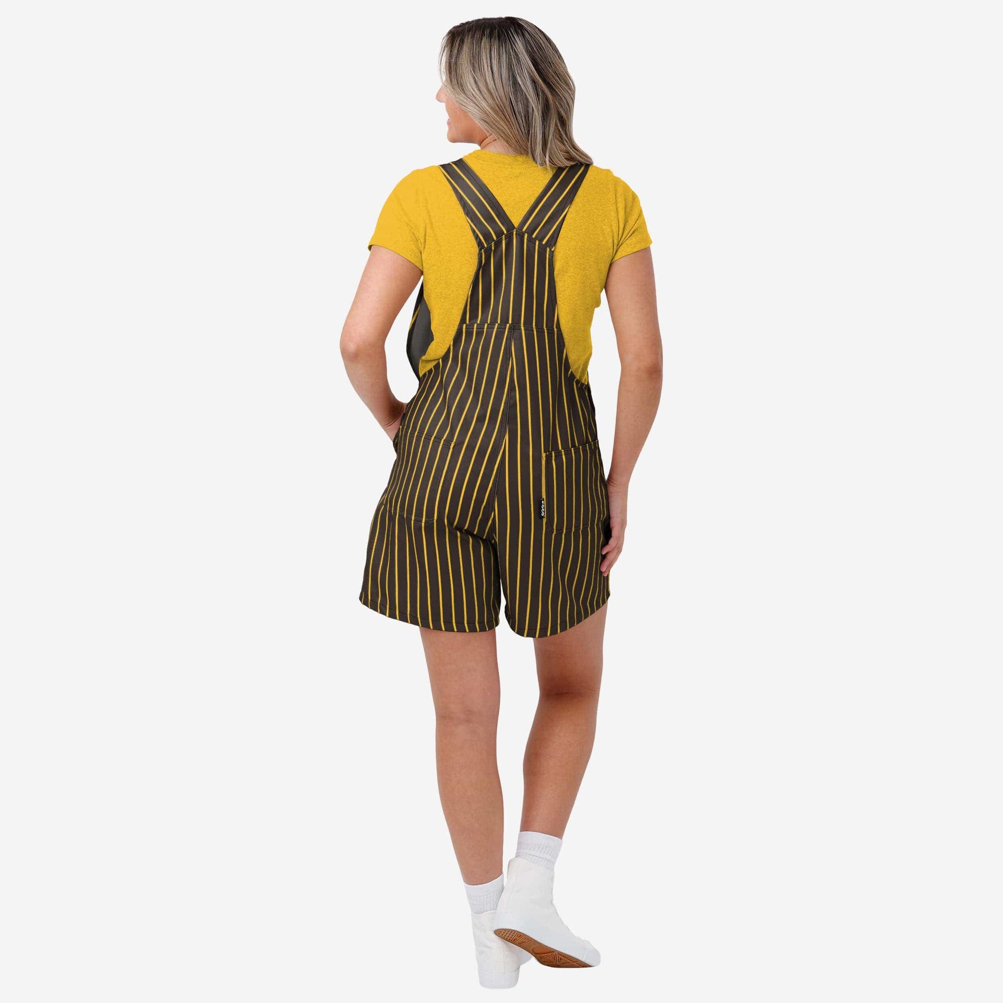 The bib pocket is perfect for storing your phone, makeup, jewelry, skincare products, fragrances, or other essentials, and the adjustable bib shoulder straps ensure a comfortable fit. Two back pockets provide even more storage space. These shortalls are made of sturdy and functional woven polyester canvas that is lightweight and breathable. They provide coverage and durability, so you can focus on cheering on your team without worrying about your outfit. This pinstripe style is so perfect for gameday that there's a good chance you'll be on the receiving end of a whole lot of postgame high fives and fist bumps, because your fellow fans will deem you the star of the game, responsible for every big play.