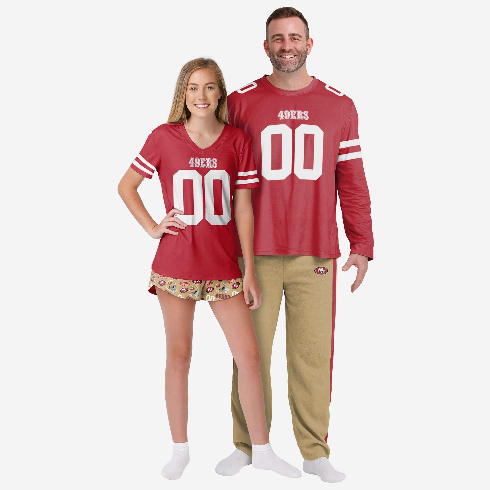 Get some matching family pajamas and dress to impress this holiday season! You won't want to miss these women's team pajamas! These women's PJ's are comfortable and show off your team spirit in the form of some sweet women's jammies. Introducing the San Francisco 49ers Women's Gameday Ready Pajama Set! Don't forget to take your holiday photo with the whole family wearing matching Christmas pajamas!