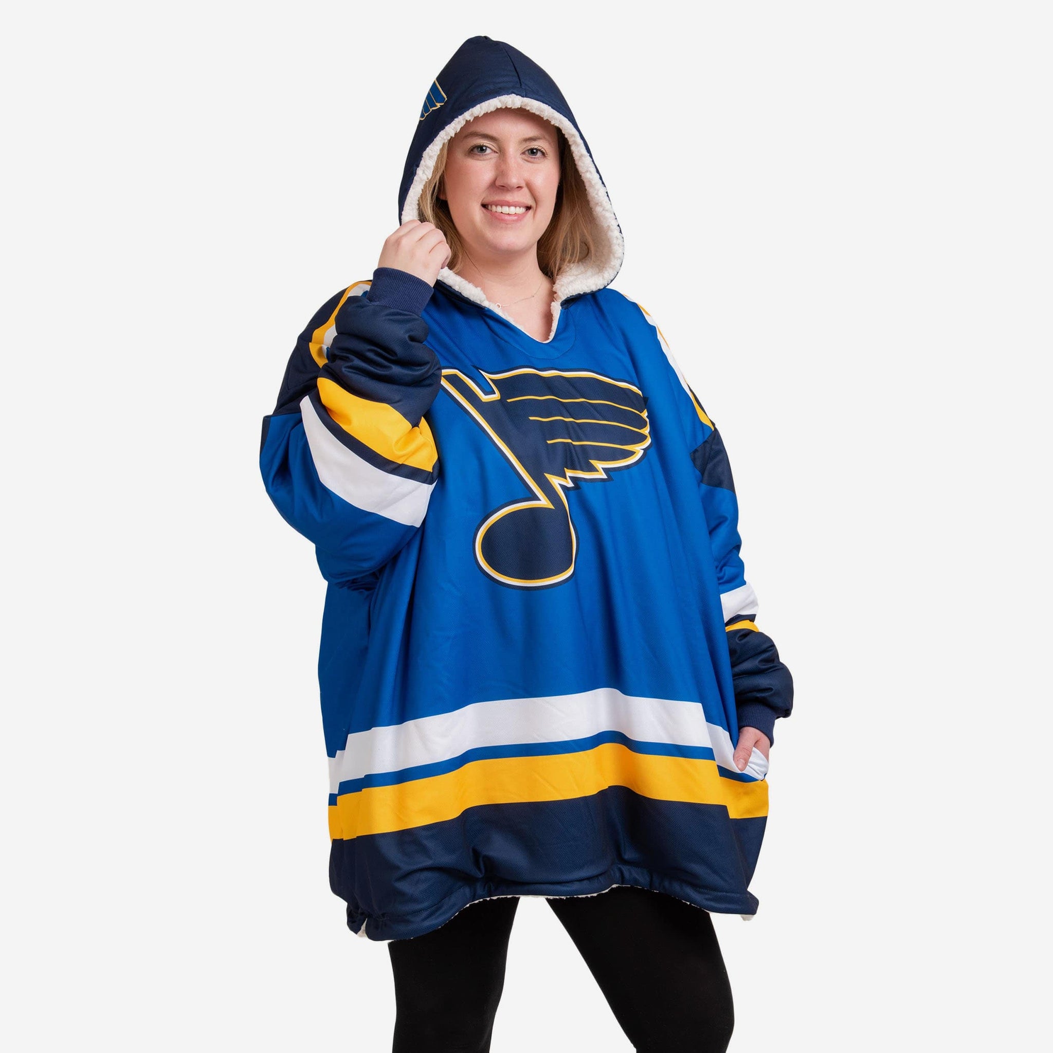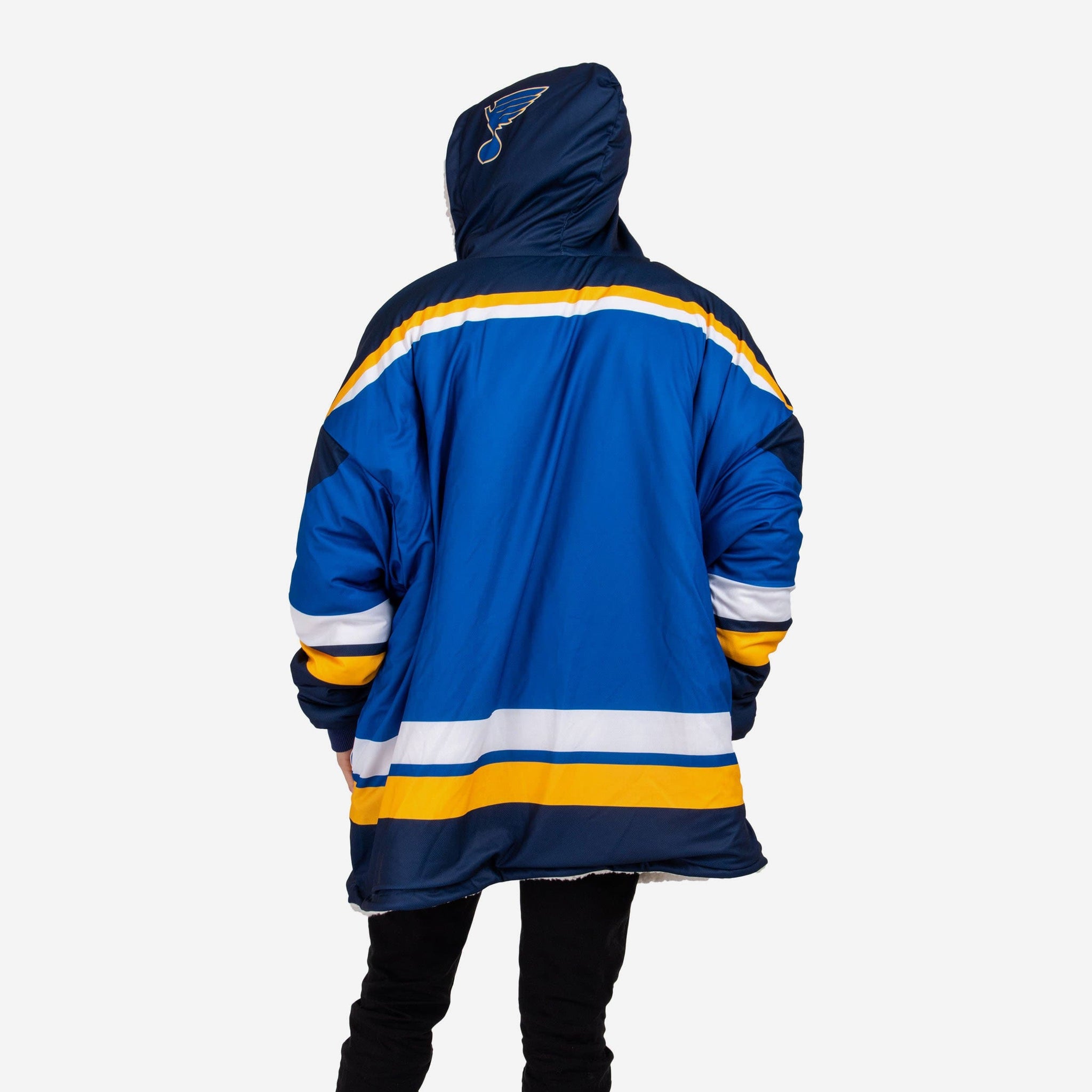 Dress like the star of the game without leaving your couch. Introducing the St. Louis Blues Reversible Gameday Hoodeez.