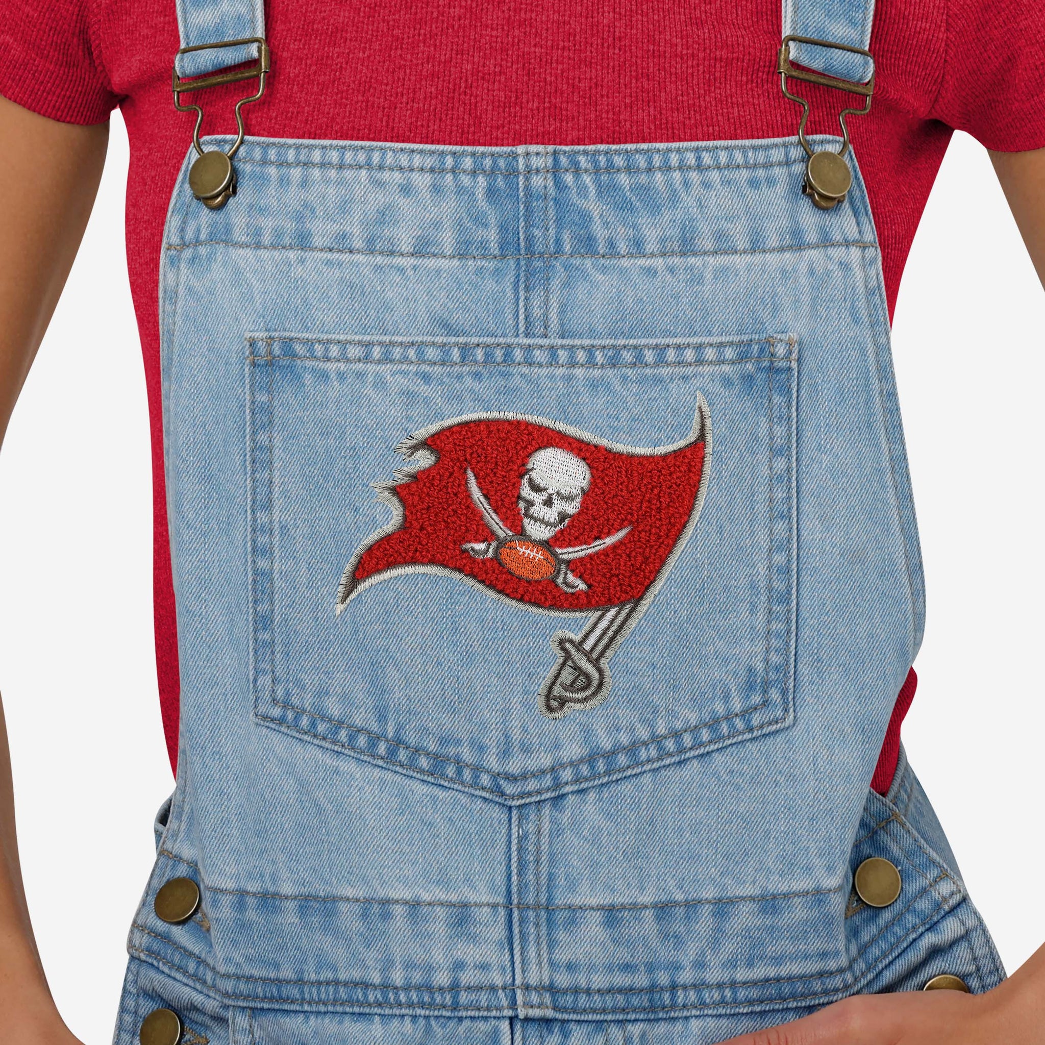 Tampa Bay Buccaneers Womens Big Logo Denim Bib Shortalls FOCO S - FOCO.com