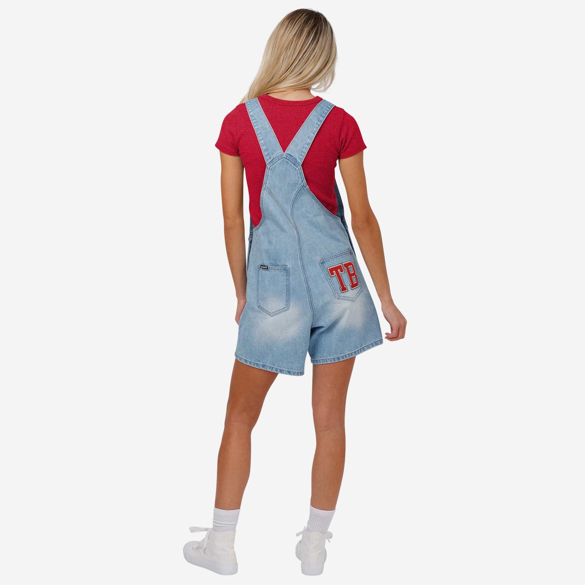Tampa Bay Buccaneers Womens Big Logo Denim Bib Shortalls FOCO - FOCO.com
