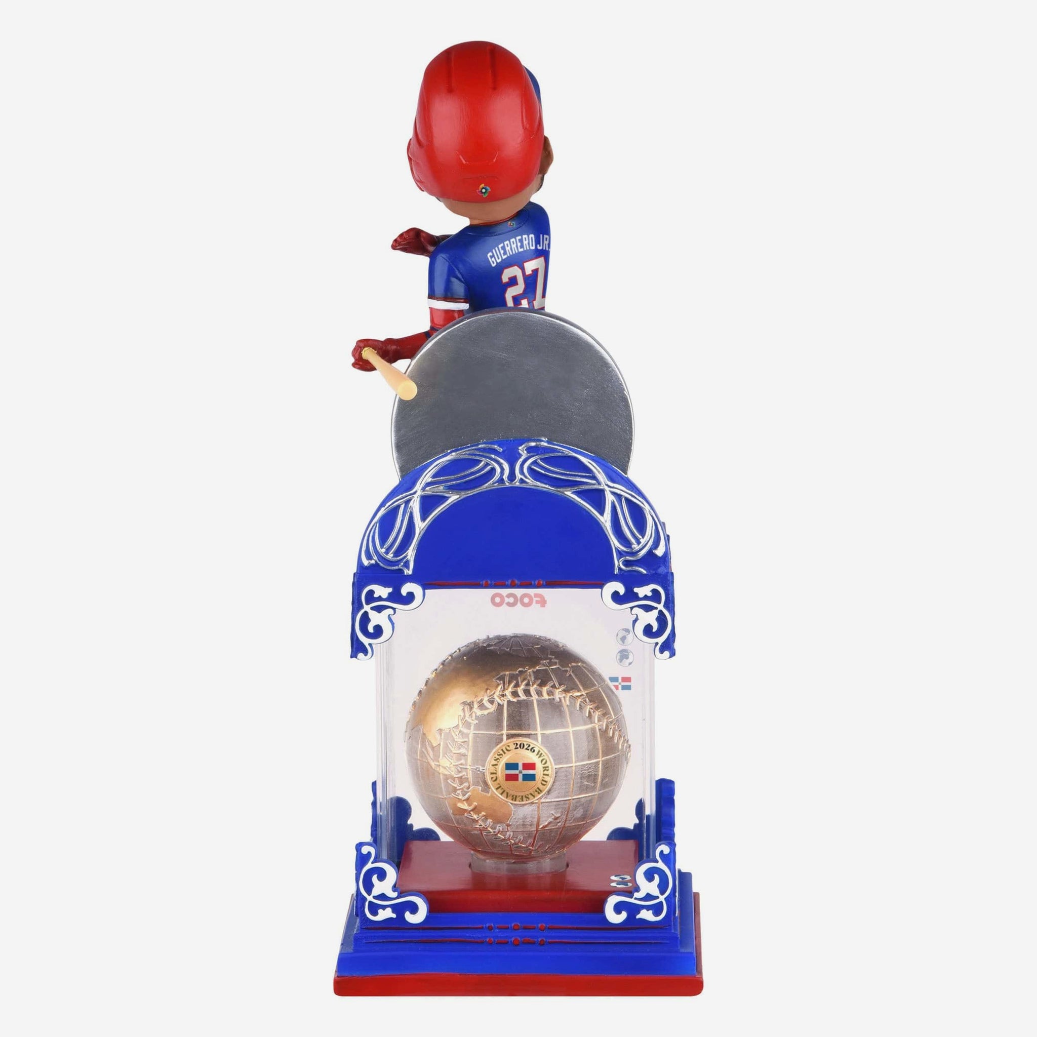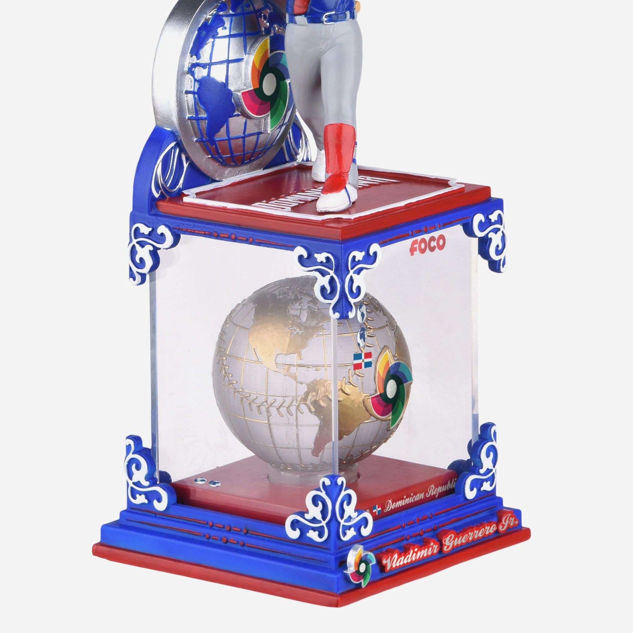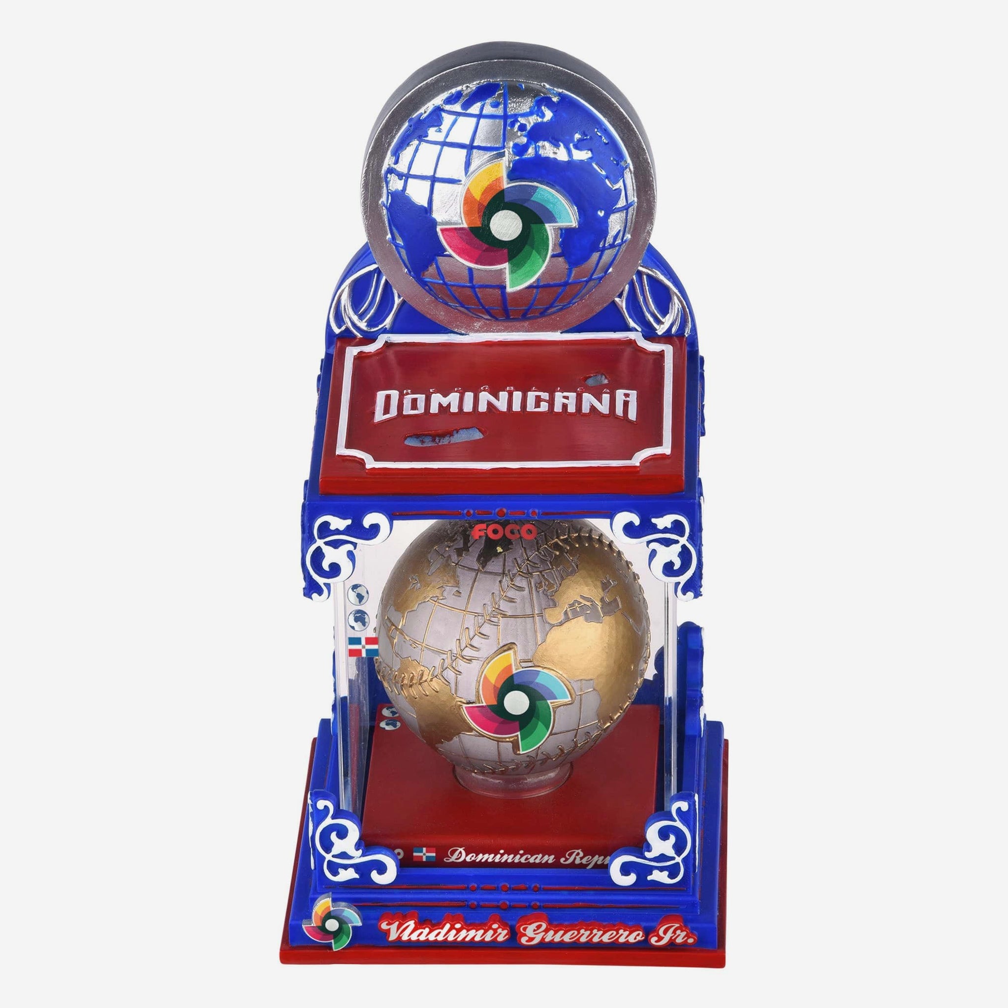 Bring the entire world of baseball to your collection with the Vladimir Guerrero Jr. Dominican Republic 2026 World Baseball Classic Globe Case Bobblehead. Showcasing Guerrero Jr. representing his country on baseball’s biggest international stage, this collectible pairs tournament pride with a striking globe display that celebrates the global reach of the WBC.