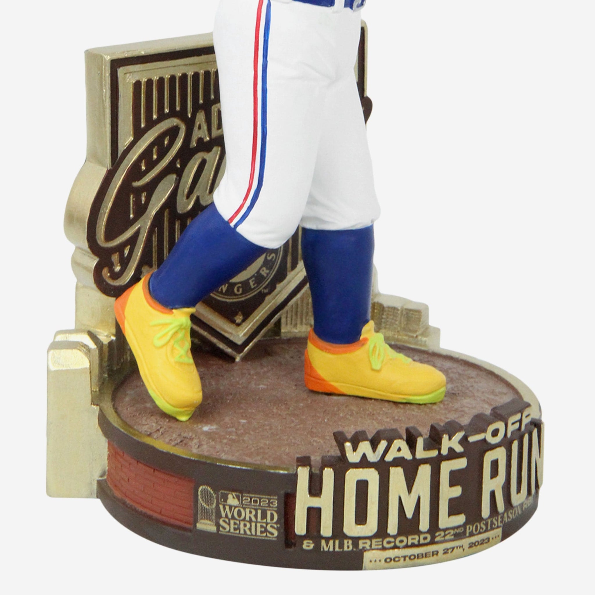 - “WALK-OFF HOME RUN & MLB RECORD 22ND POSTSEASON RBI” and “OCTOBER 27TH, 2023” text displays on front of base, so you’ll never forget that epic moment
