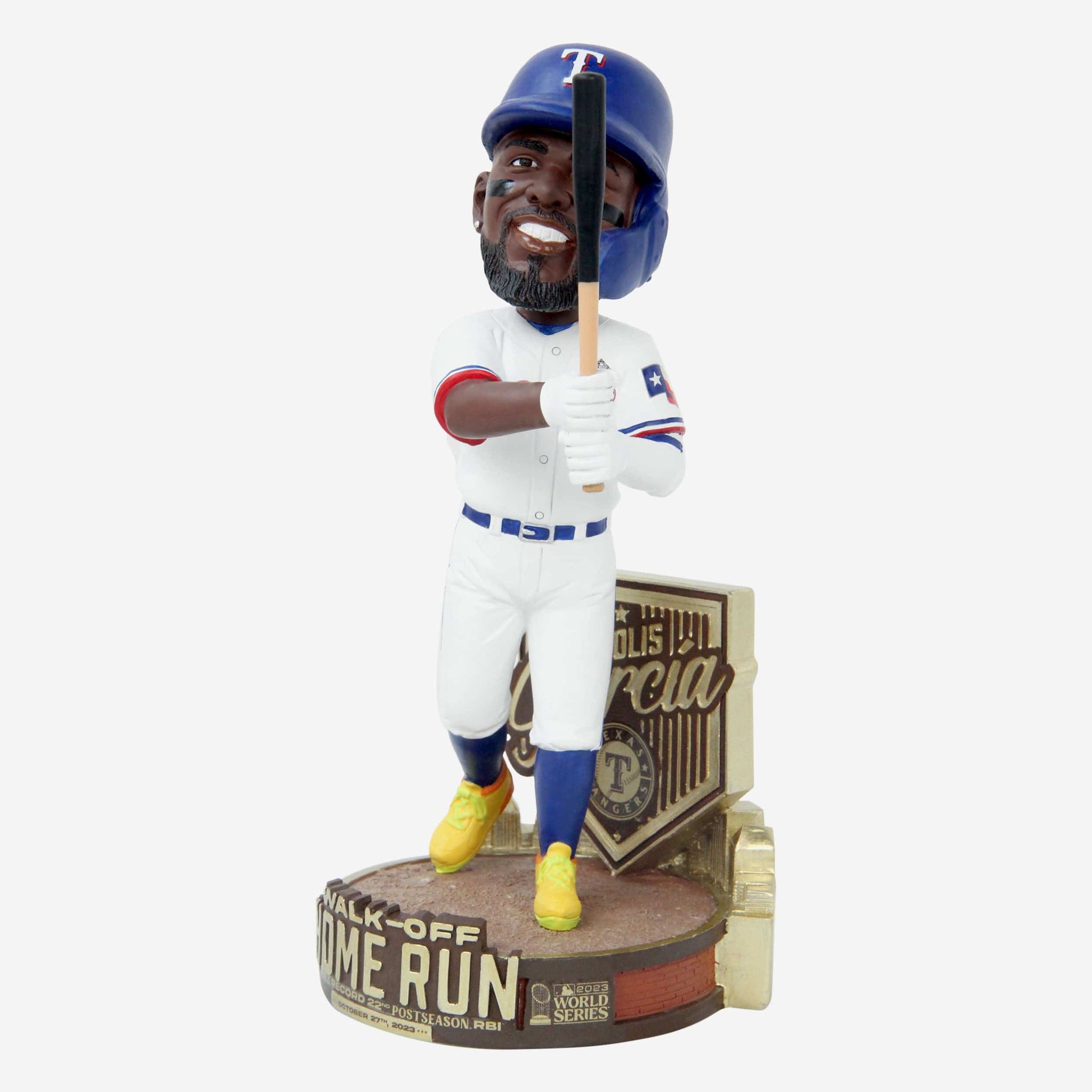 El Bombi called game! Show off that home run power and take game one of the World Series with the Adolis García Texas Rangers 2023 World Series Game One Walk Off Home Run Bobblehead!