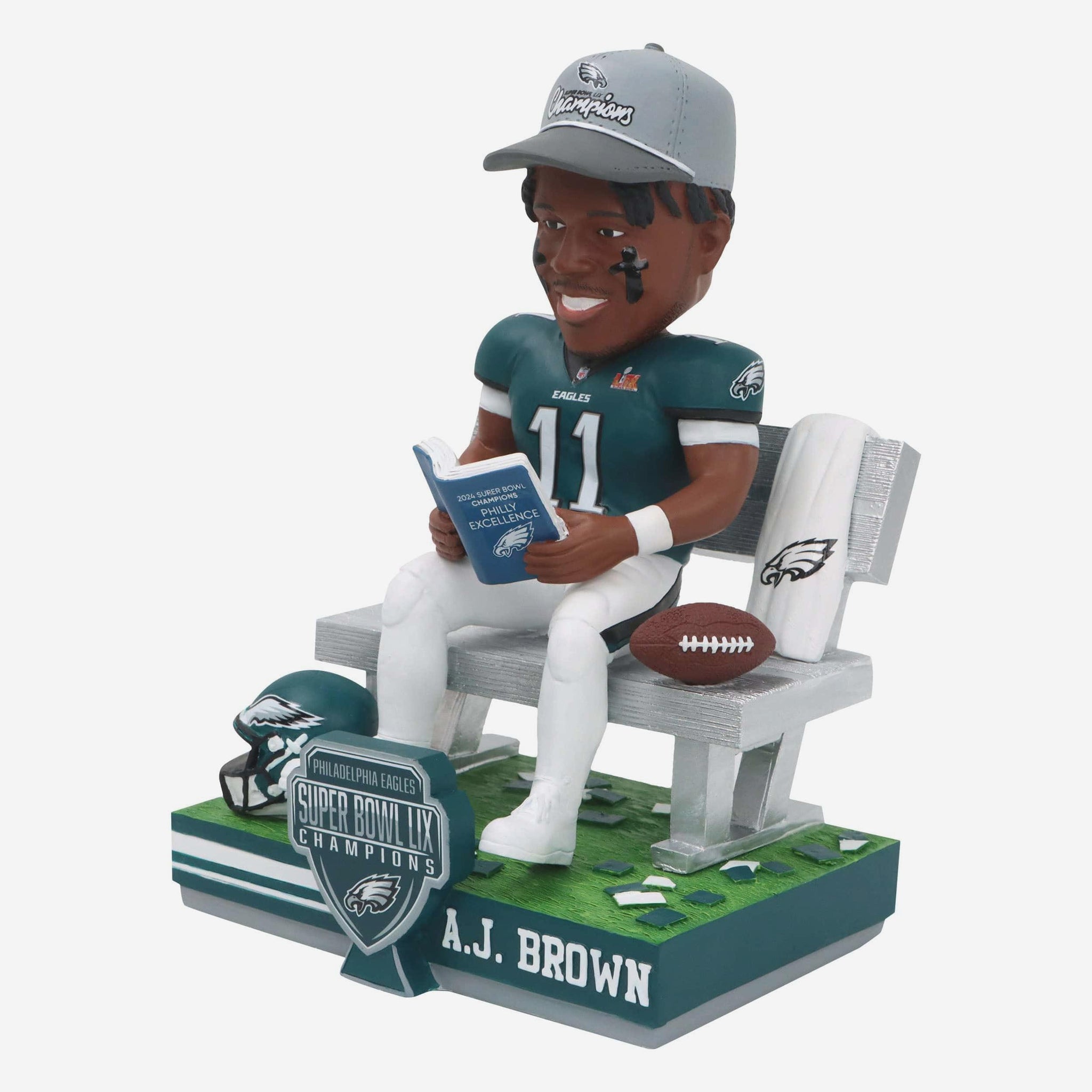 The book club of champions! Make your celebration a page-turner with this A.J. Brown Philadelphia Eagles Super Bowl LIX Champions Champion Book Club Bobblehead.