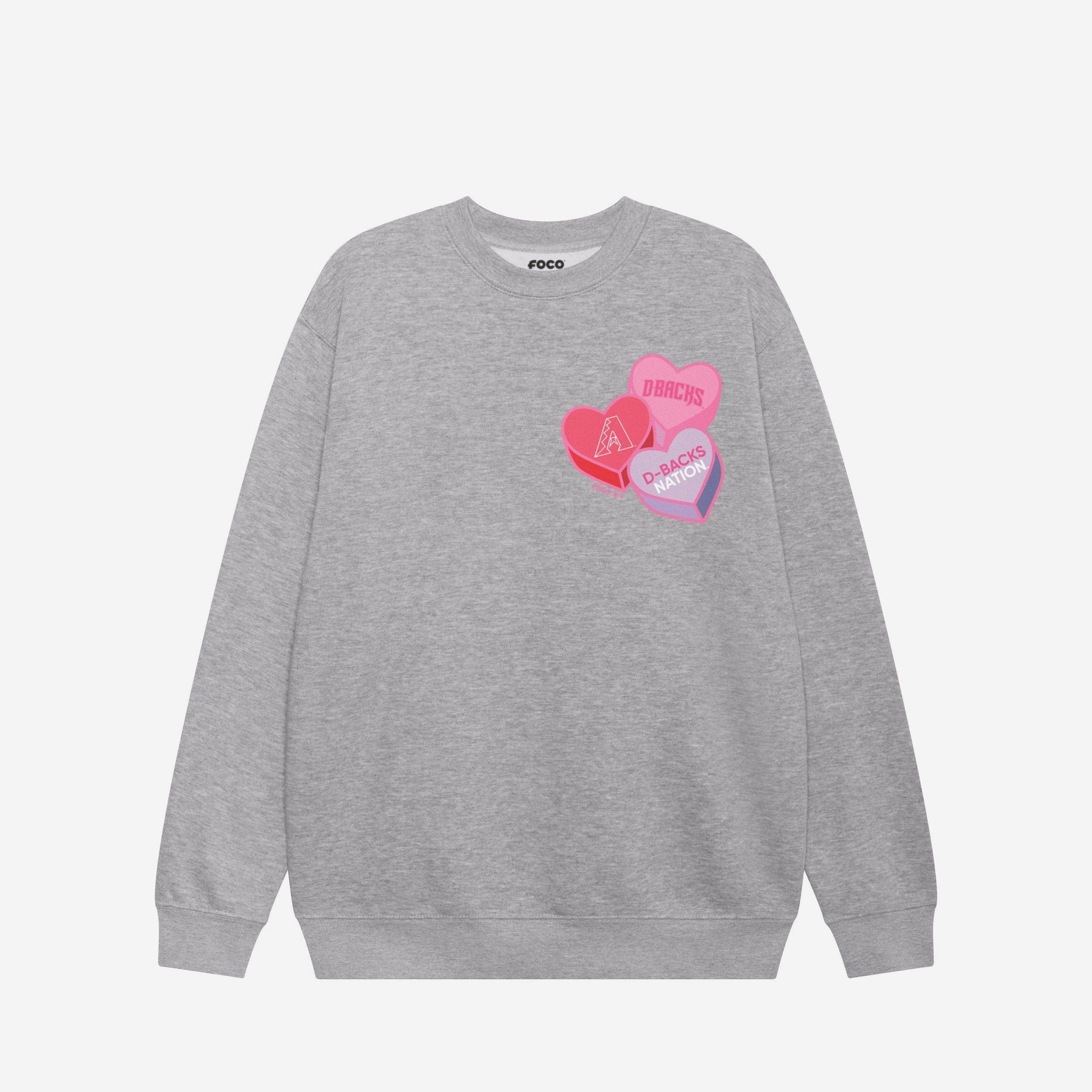 Arizona Diamondbacks Candy Heart Crew Neck Sweatshirt FOCO Athletic Heather S - FOCO.com