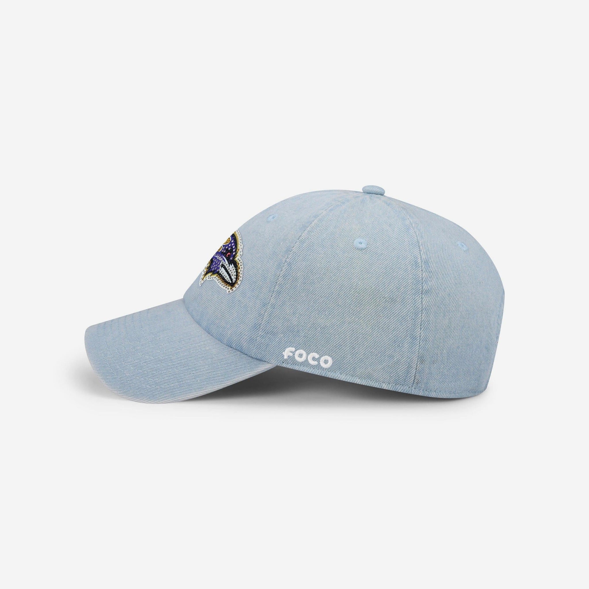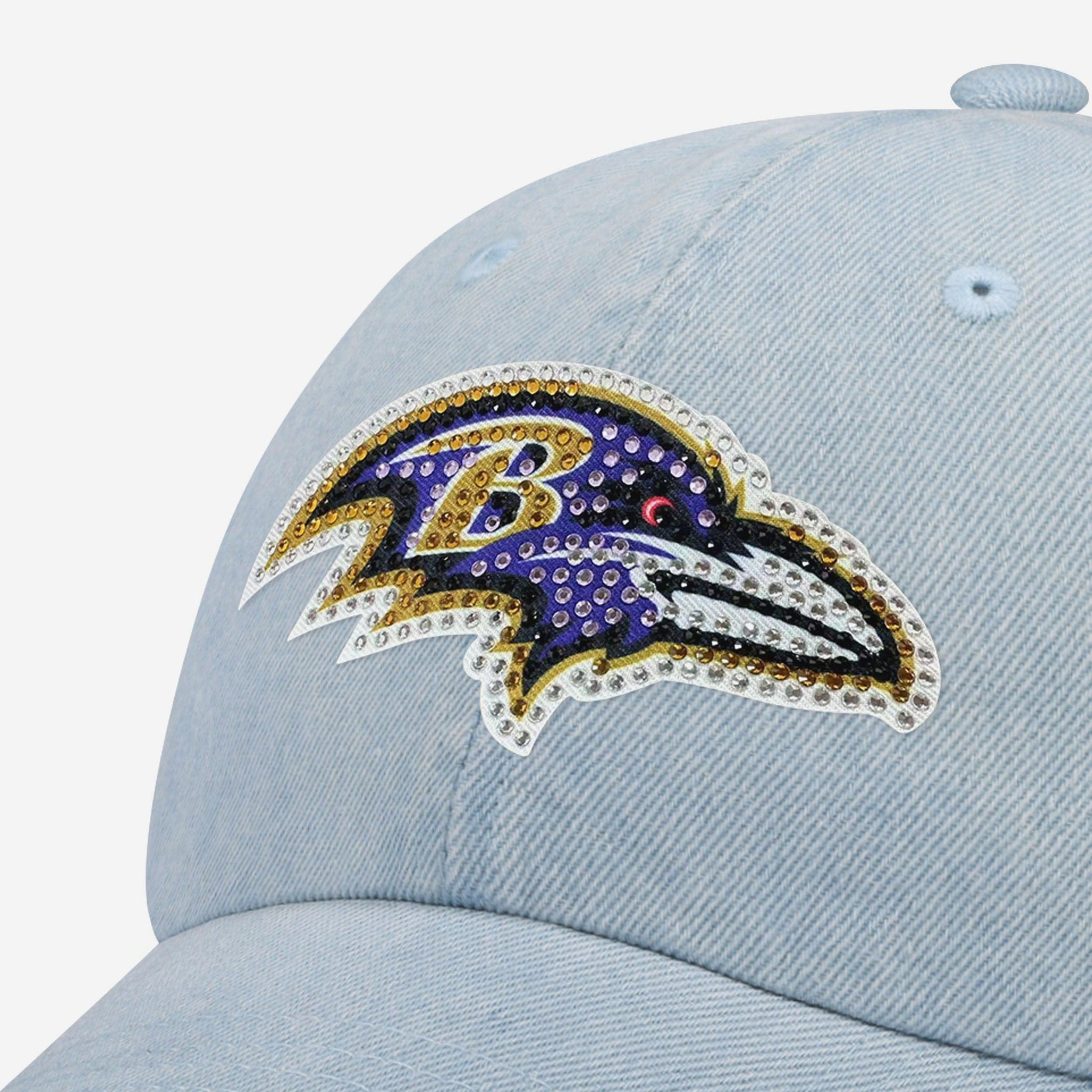 It's true what they say, you can never go wrong with a classic. Which is why this Baltimore Ravens Rhinestone Logo Denim Casual Cap is a must-have for maximizing your fan spirit. Featuring an embroidered team logo display and unstructured design with a deep curve visor, low crown, and adjustable fabric strap closure with snap buckle, this cap will help you clean up your style. The relaxed design makes this hat comfortable for all-day wear, and the perfect dad hat for your wardrobe.