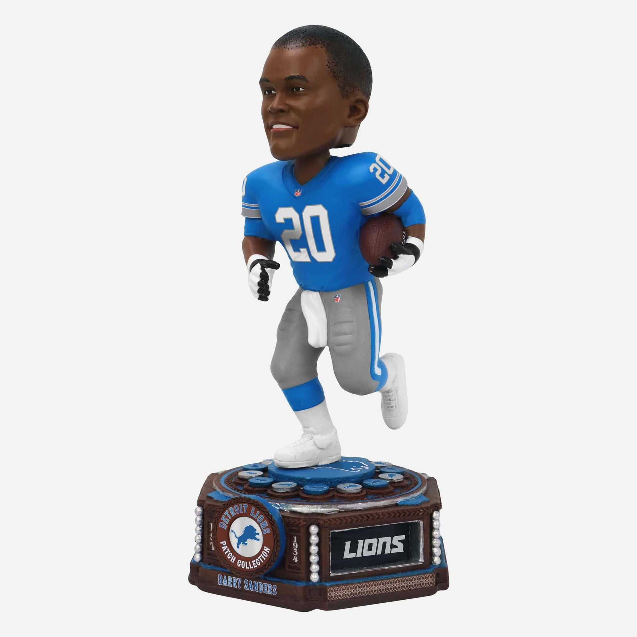 Get ready to patch together your team pride! Take a trip down memory lane with the Barry Sanders Detroit Lions Patch Collection Bobblehead.