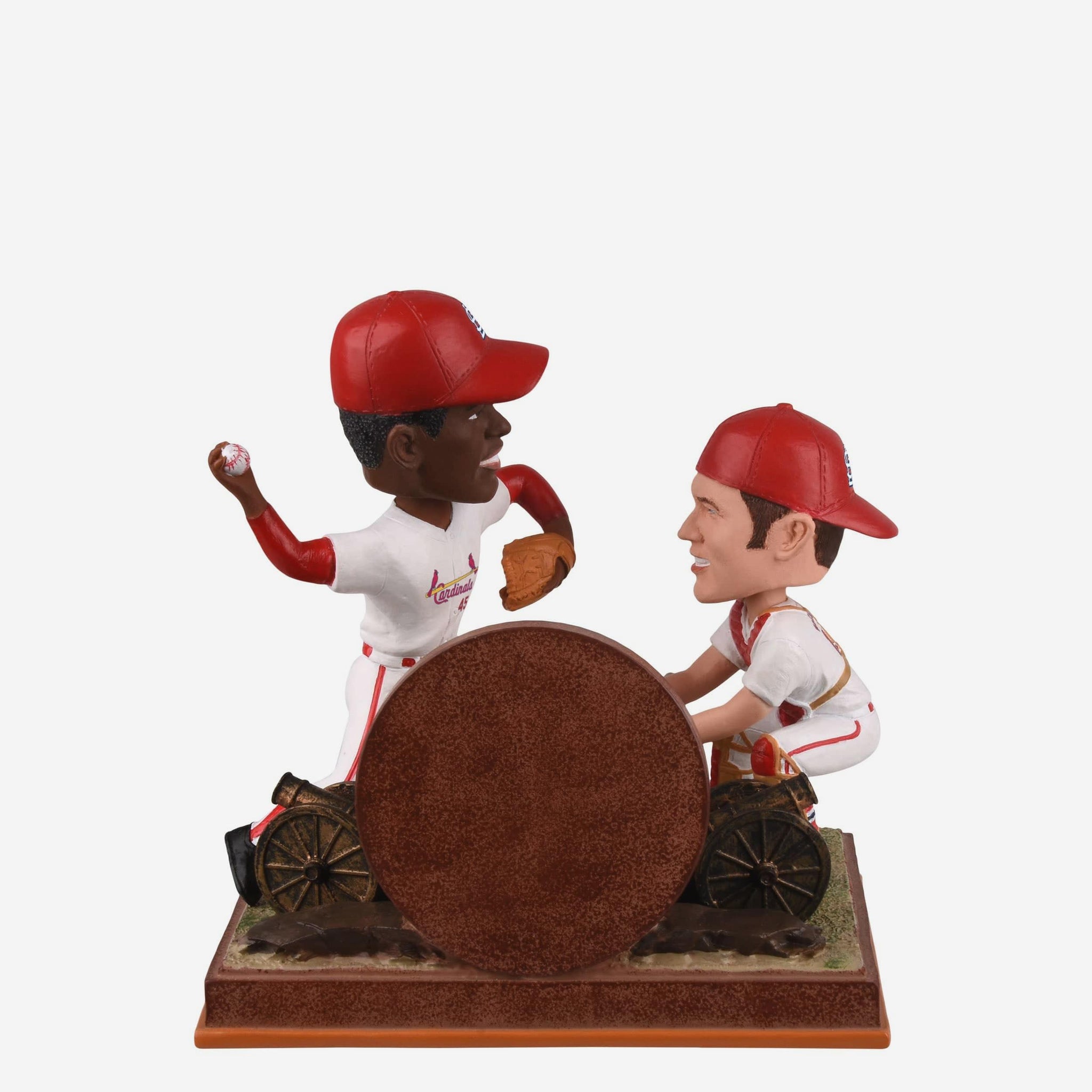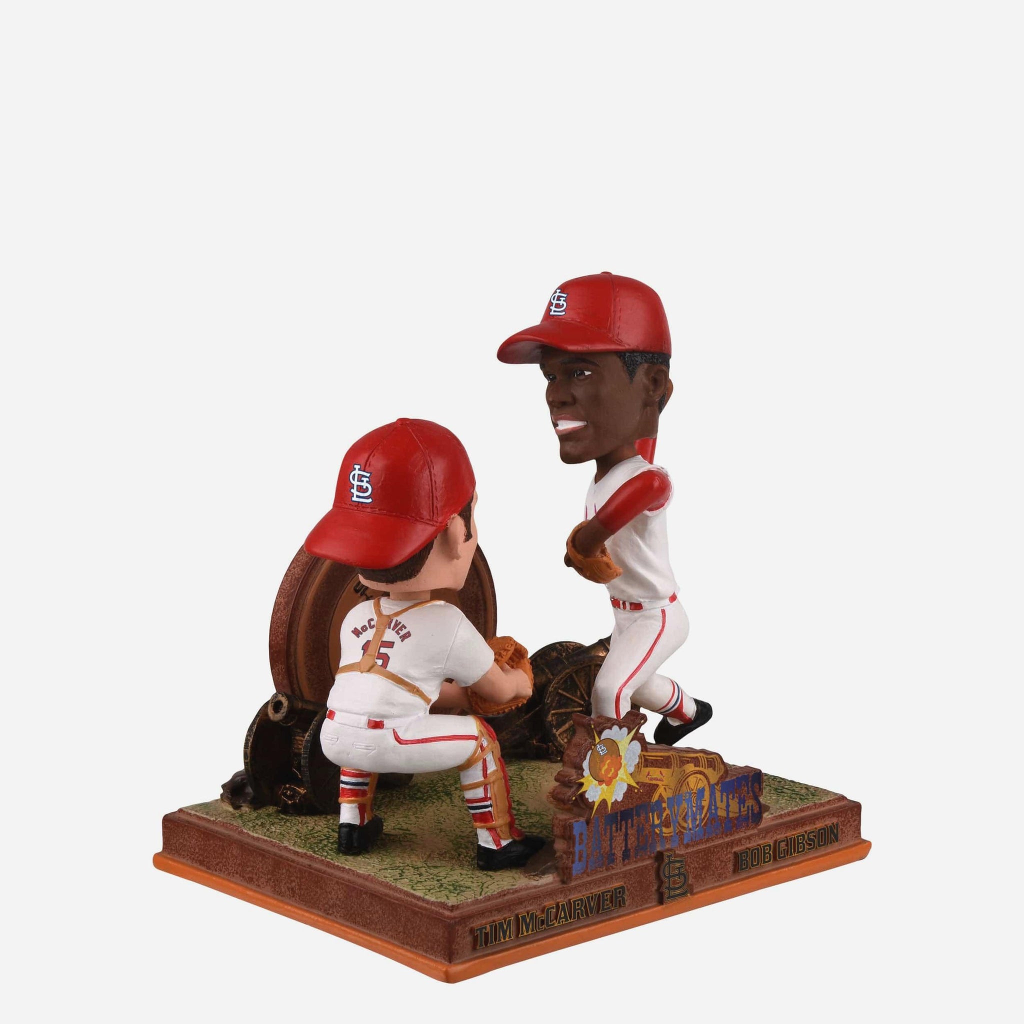 - Dual bobblehead design featuring Bob Gibson and Tim McCarver together in classic St. Louis Cardinals uniforms