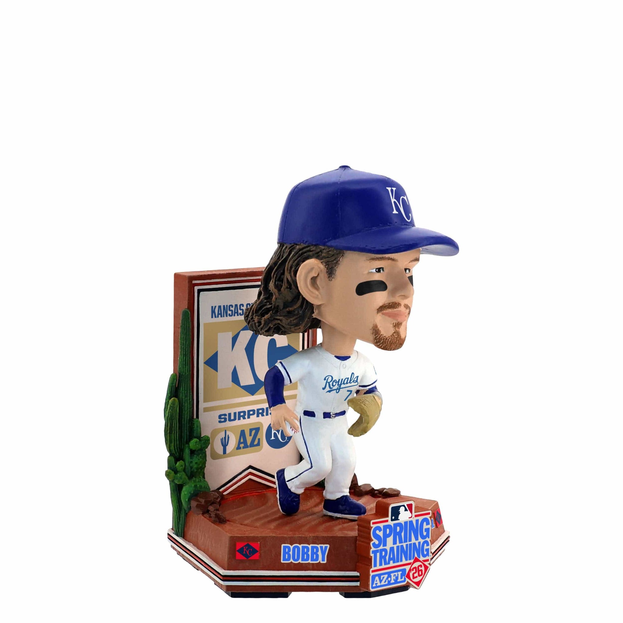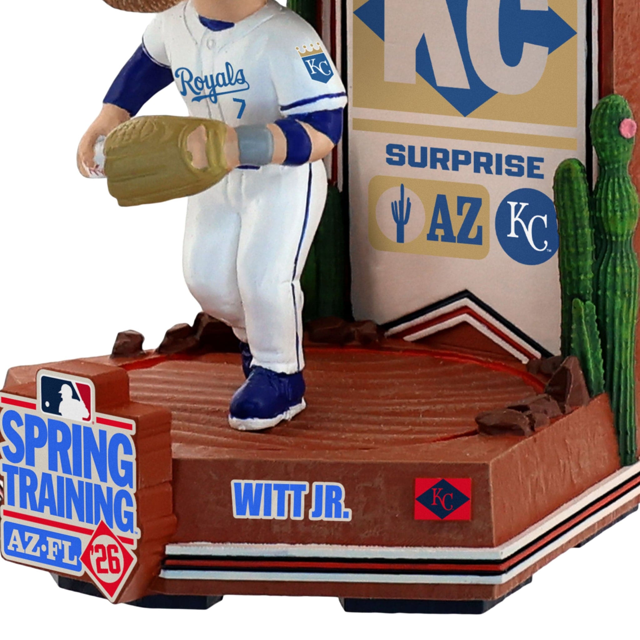 Bring the desert vibes of preseason baseball to your collection with the Bobby Witt Jr. Kansas City Royals 2026 Spring Training Cactus League Mini Bighead Bobblehead, celebrating the road to Opening Day in iconic Arizona style.