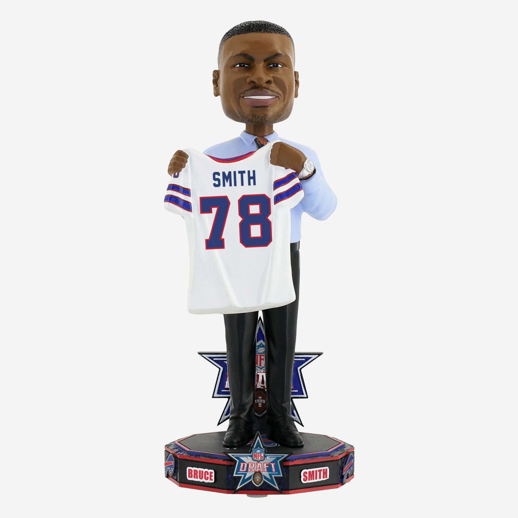 How greatness began: The first pick of the 1985 draft. How greatness can continue: The Bruce Smith Buffalo Bills 1985 NFL Draft Pick Bobblehead in your fancave!