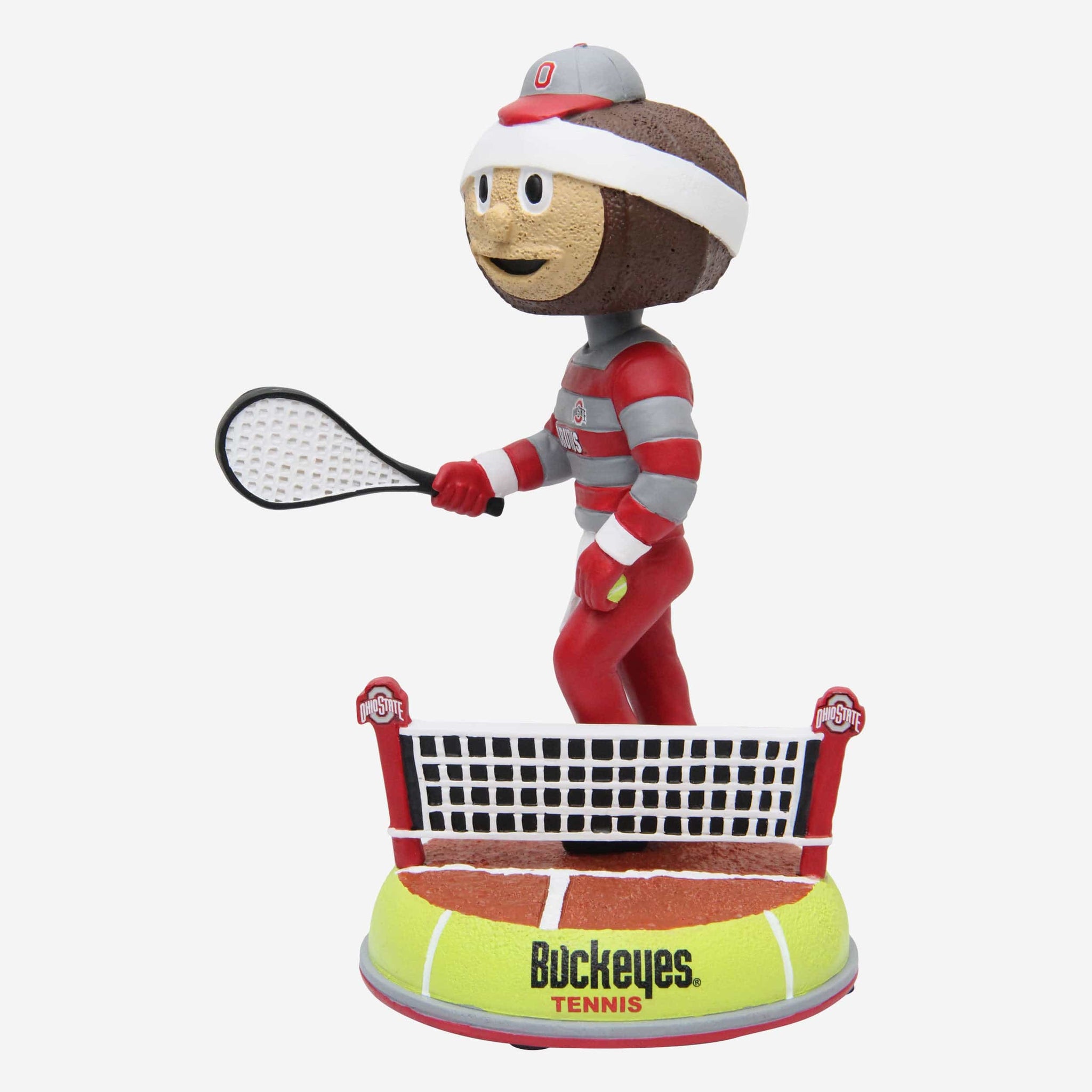 It's game, set, match on anyone who doubts your OSU fandom when you've got this Brutus Buckeye Ohio State Buckeyes Tennis Mascot Bobblehead on your team.