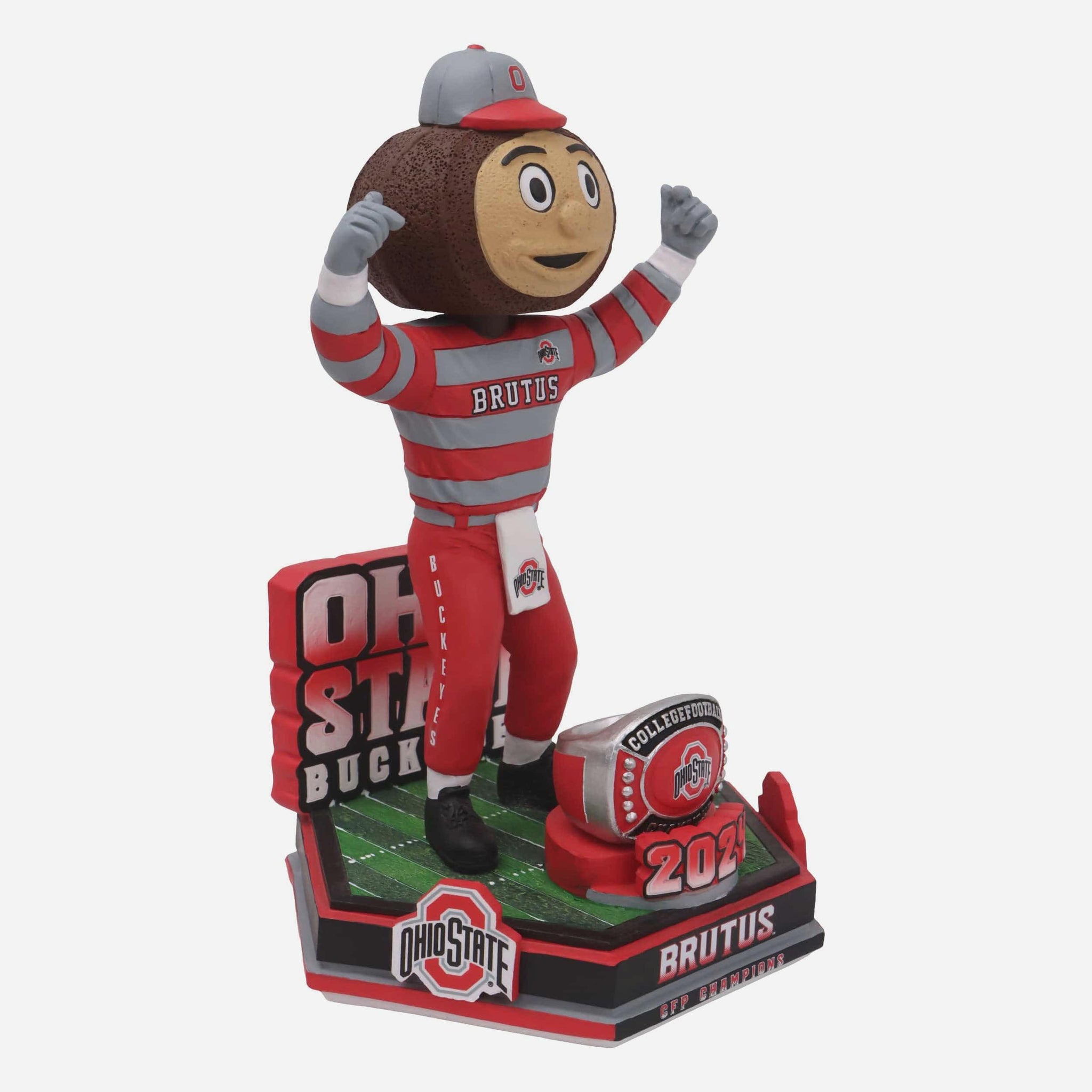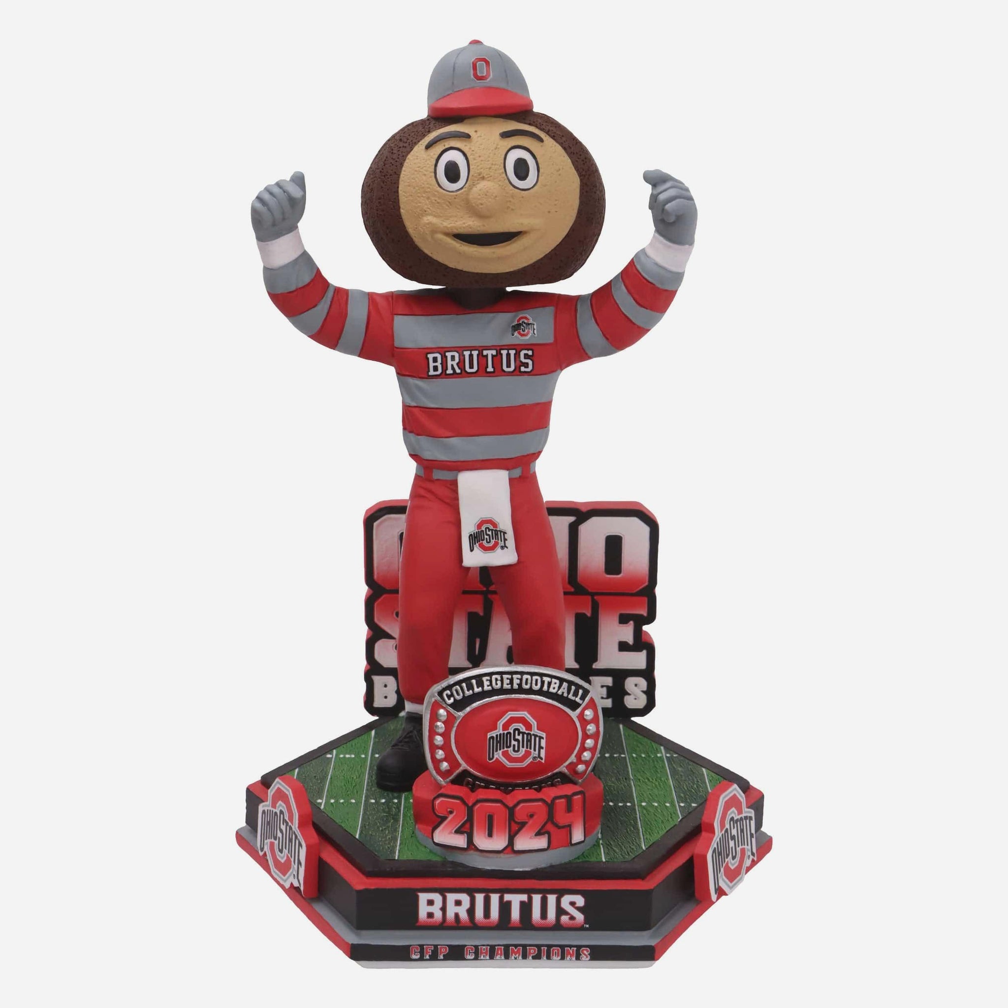2024: Feeling fine with trophy number nine! Celebrate the reigning, defending champs with this Brutus Buckeye Ohio State Buckeyes College Football National Champions 2024 Decades Of Excellence Bobblehead.