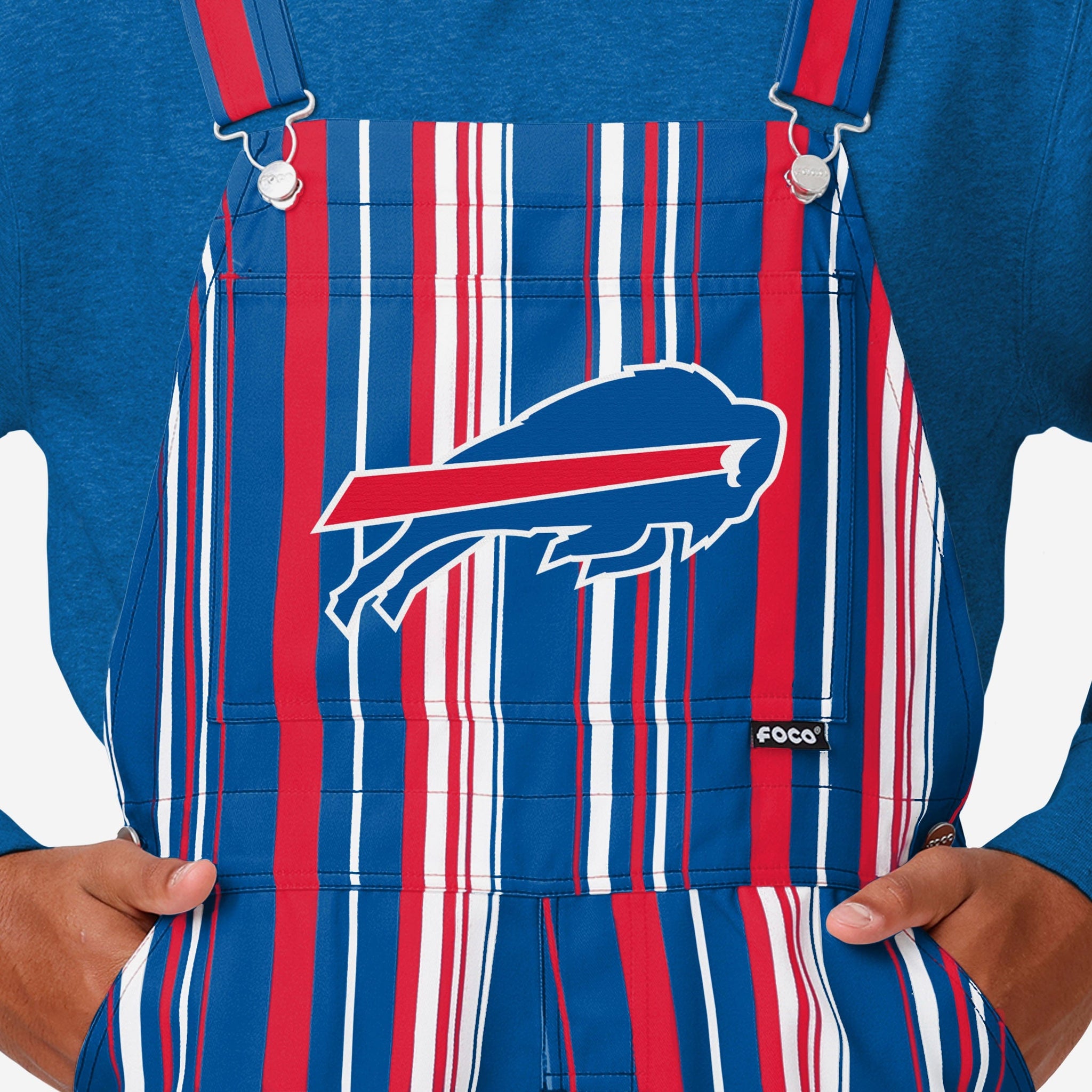 • All-over team-colored design: These overalls are covered in the official Buffalo Bills colors, so you can show your team spirit with pride.
