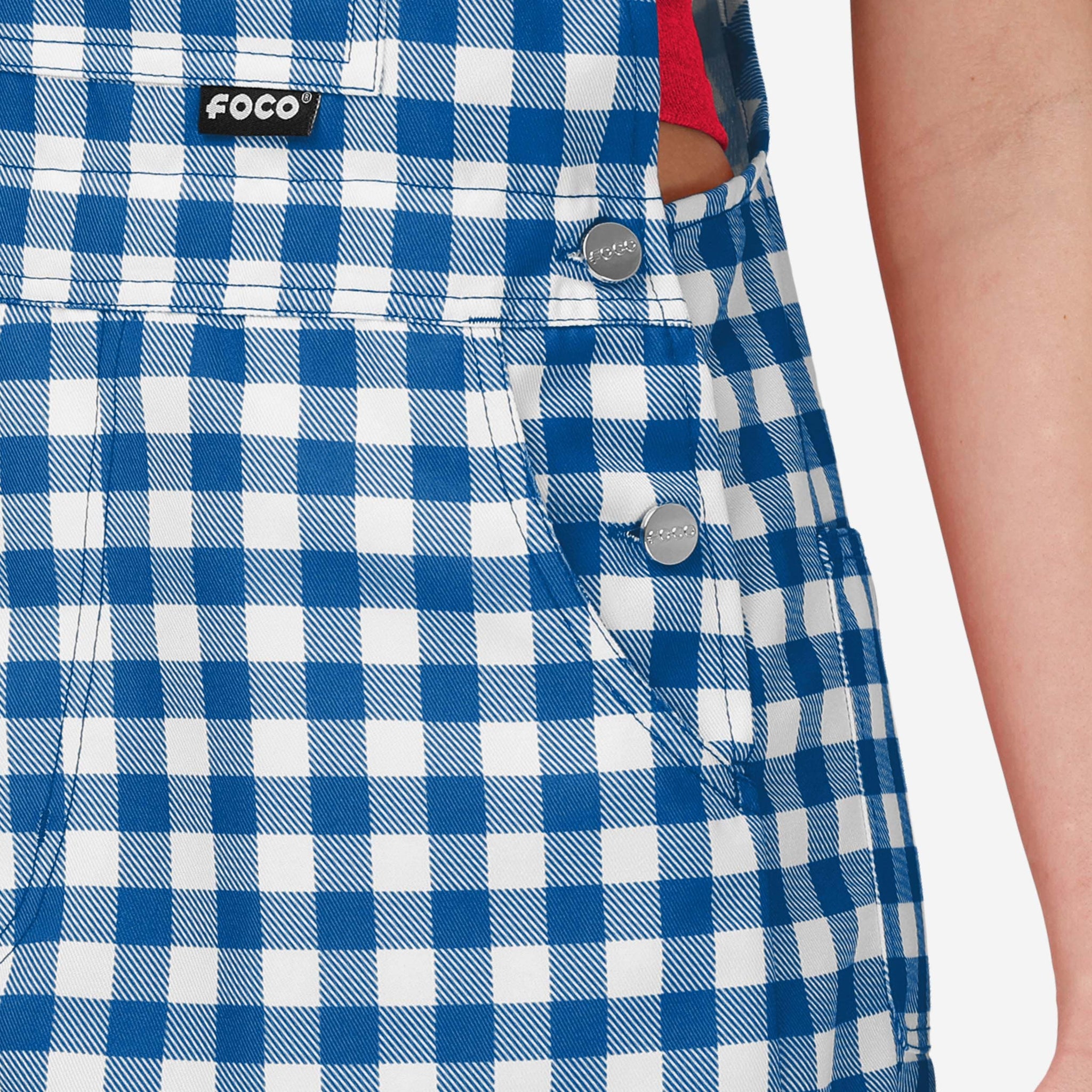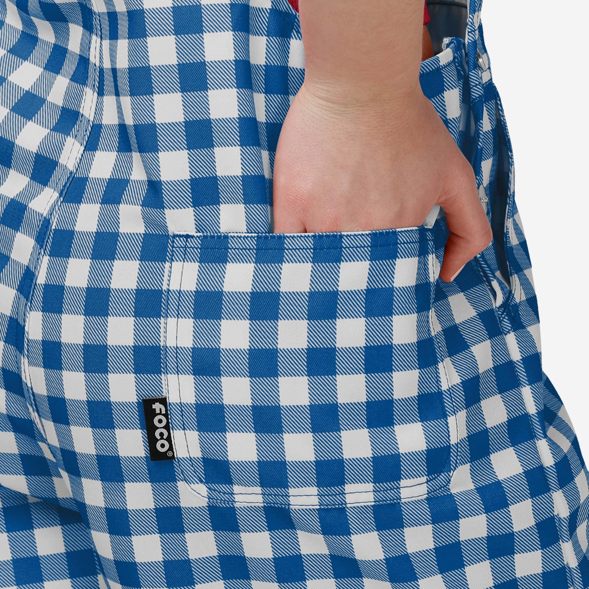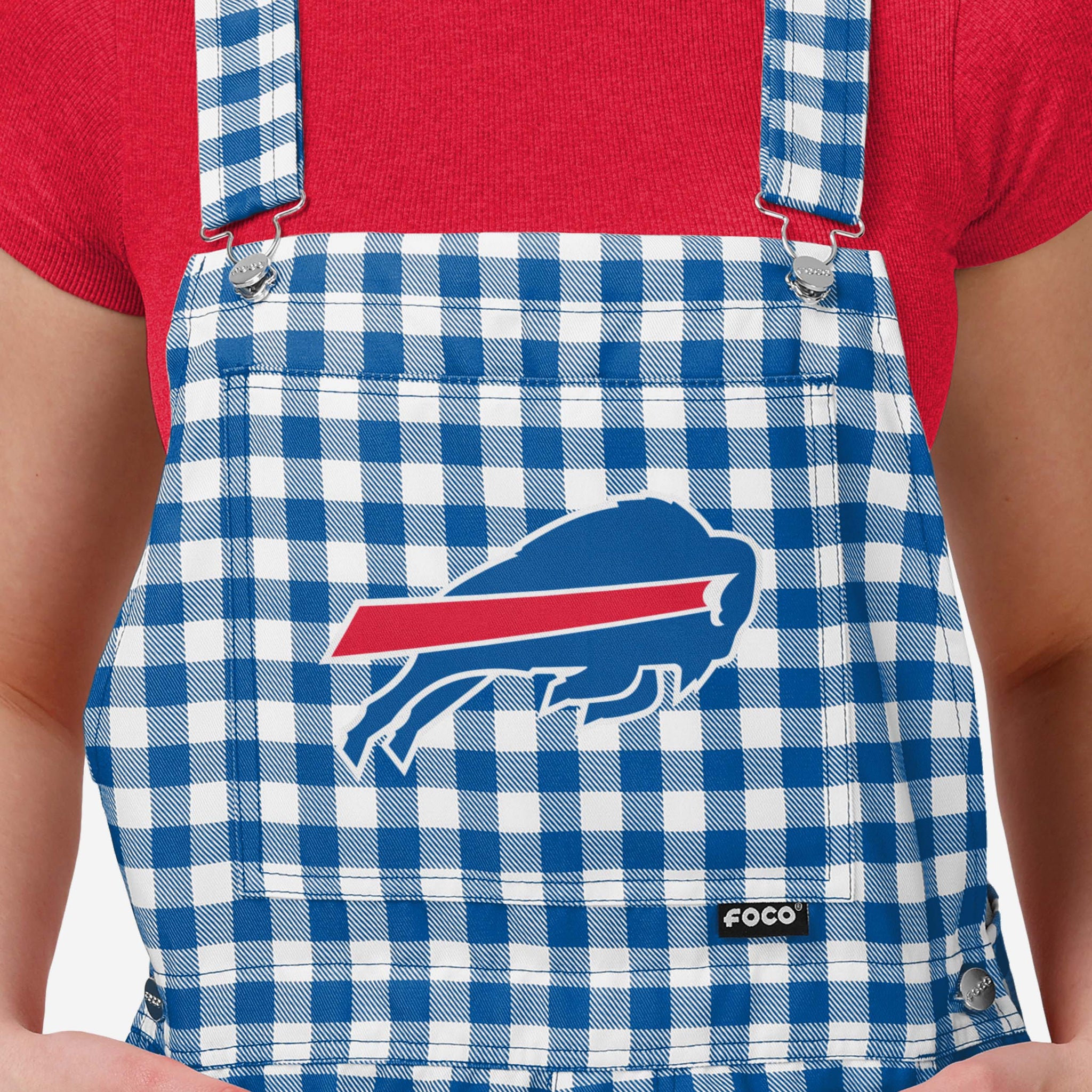 Show your team spirit in these stylish and comfortable Buffalo Bills Women's Gingham Check Bib Shortalls. With their all-over team-colored design and bold team logo display, these shortalls are the perfect way to show your support for the Buffalo Bills while showing off some gingham check fashion for a rustic, throwback feel.