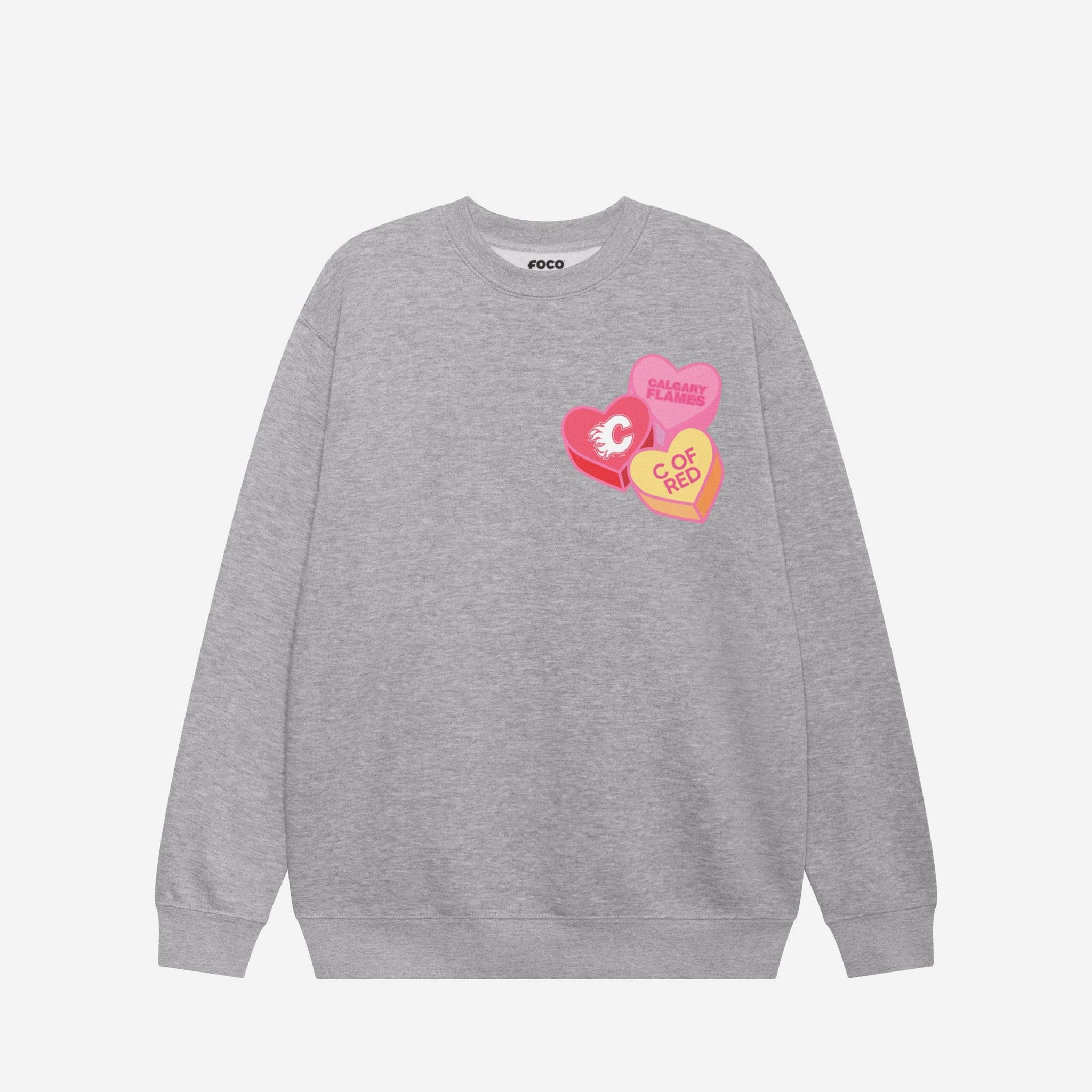 Calgary Flames Candy Heart Crew Neck Sweatshirt FOCO Athletic Heather S - FOCO.com