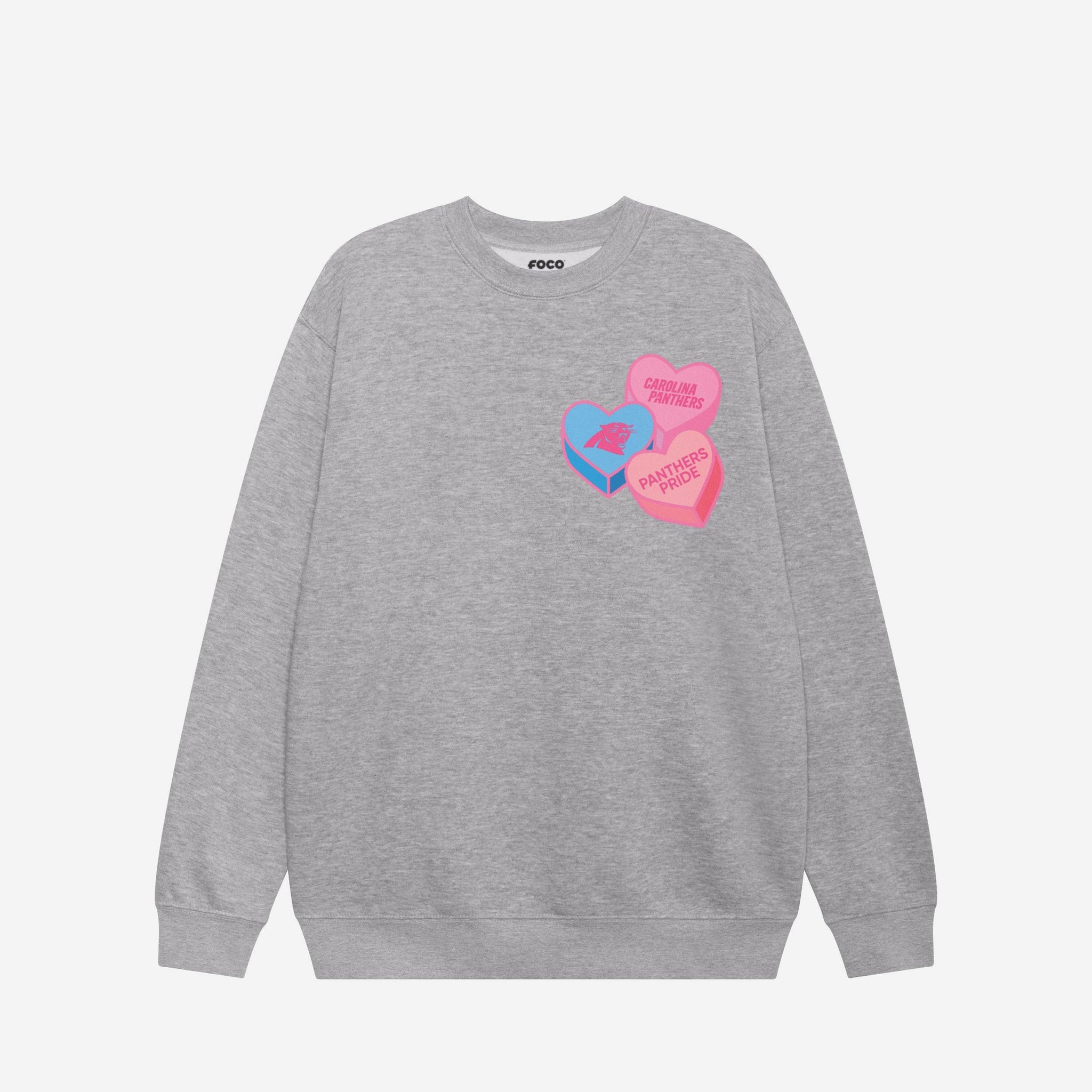 Carolina Panthers Candy Heart Crew Neck Sweatshirt FOCO Athletic Heather S - FOCO.com