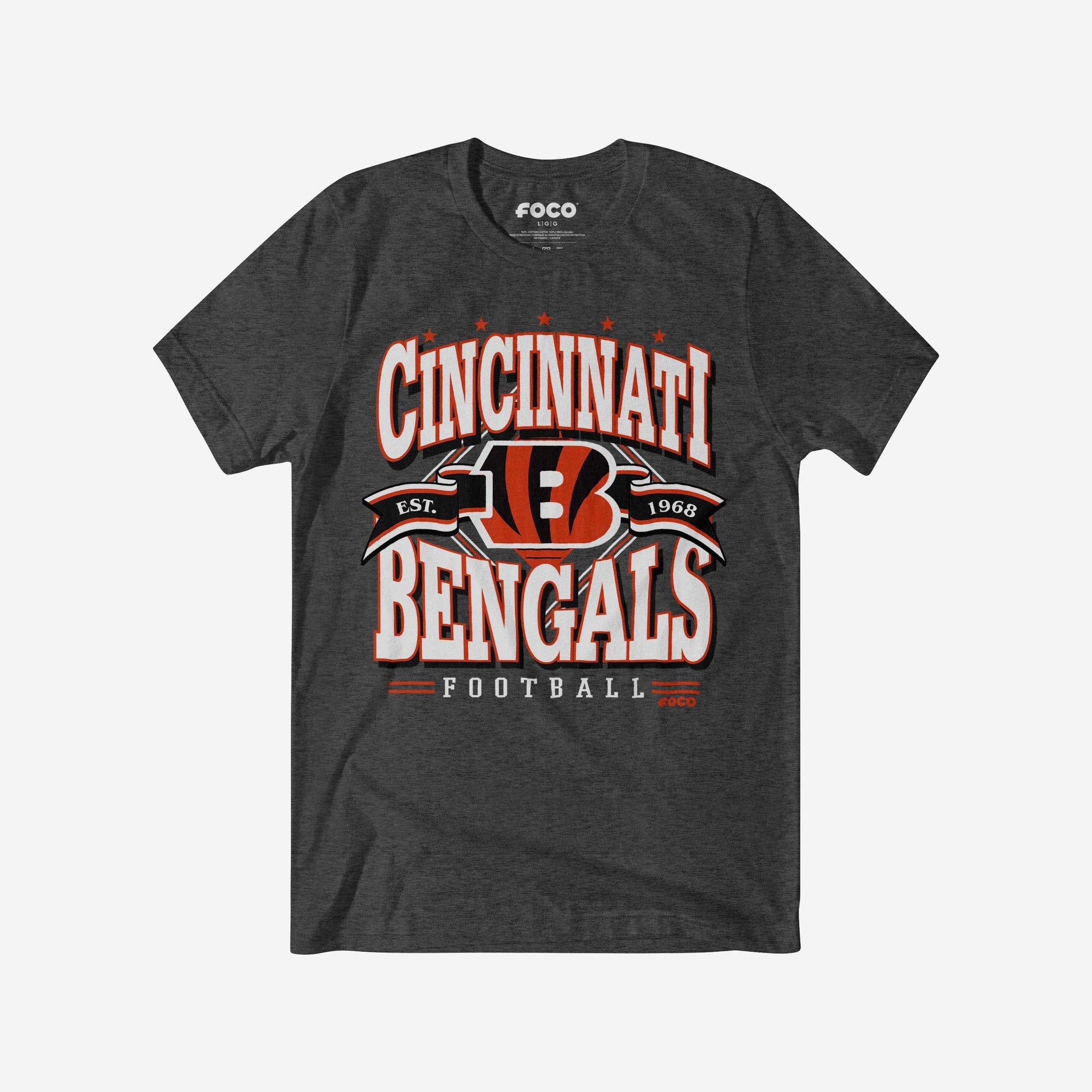 Cincinnati Bengals Established Banner T-Shirt FOCO Dark Grey Heather S - FOCO.com