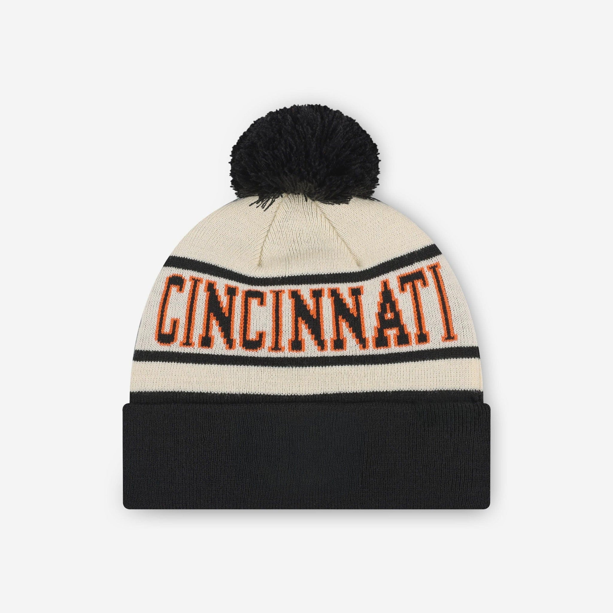 Don’t get left out in the cold. Make the smart play for gameday and beyond with the Cincinnati Bengals Heritage Stripe Primary Logo Pom Beanie!