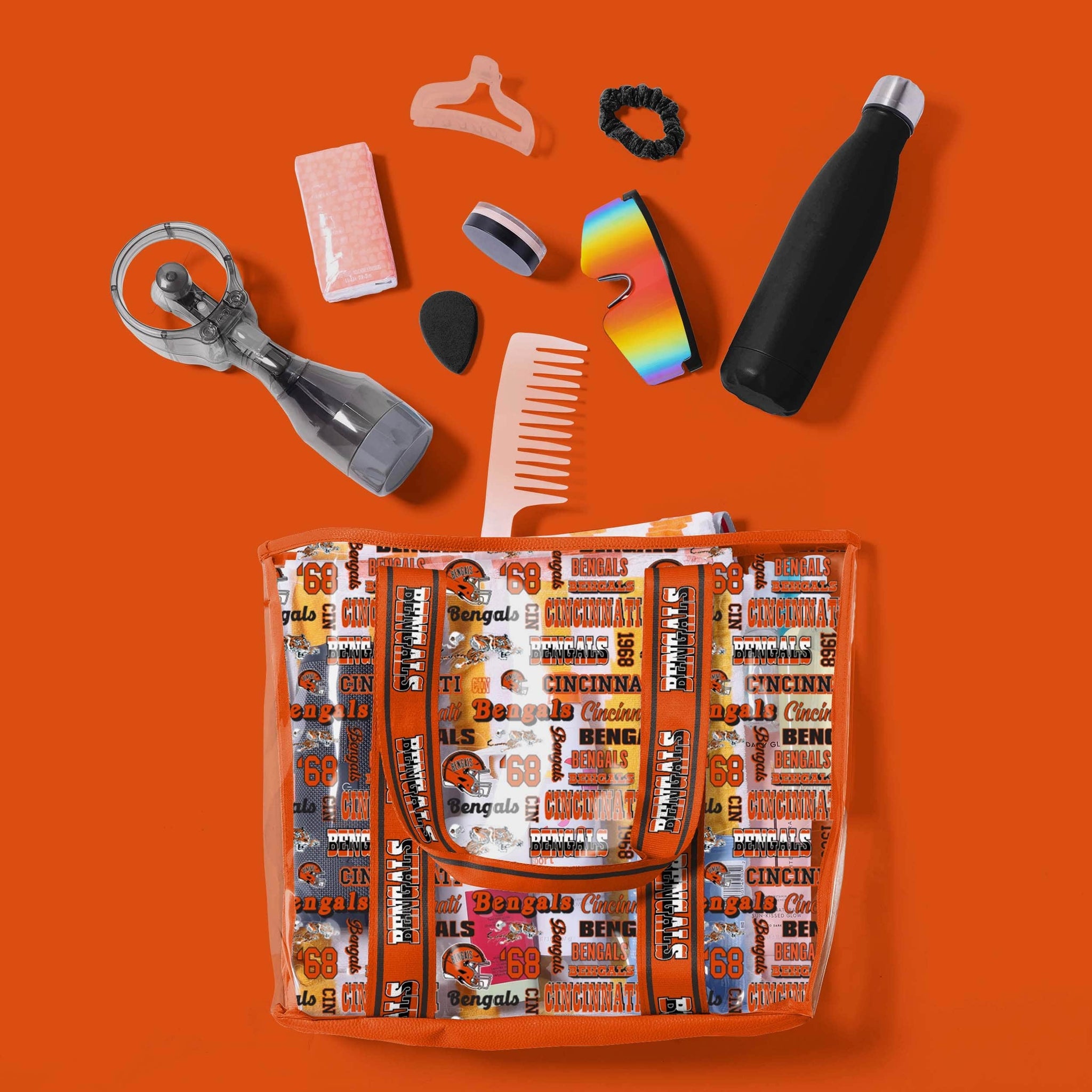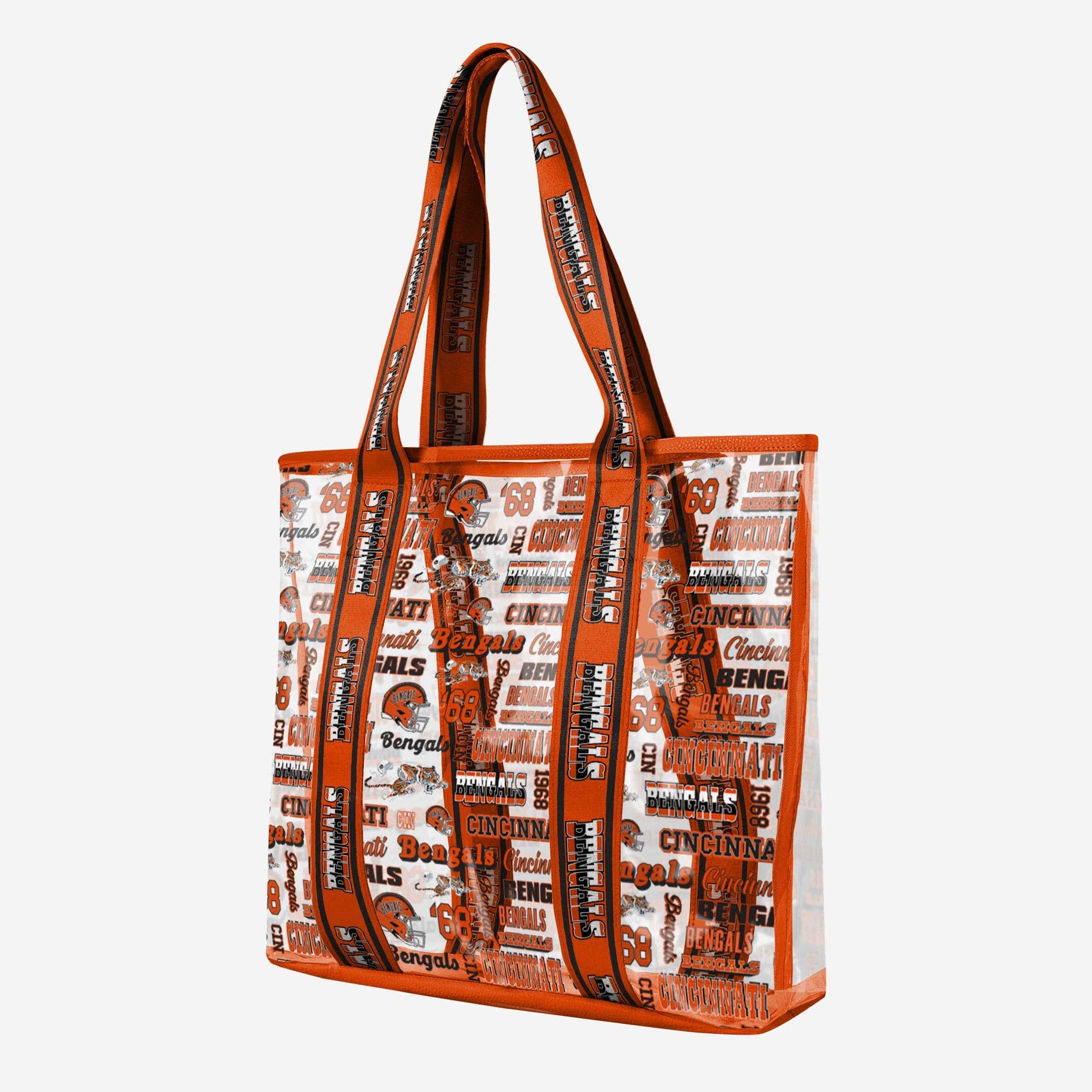 You've got it in the bag. The tote bag, that is! When you take this Cincinnati Bengals Repeat Retro Print Clear Tote Bag with you while running errands or to the game, your fandom will clearly be on display all year long.