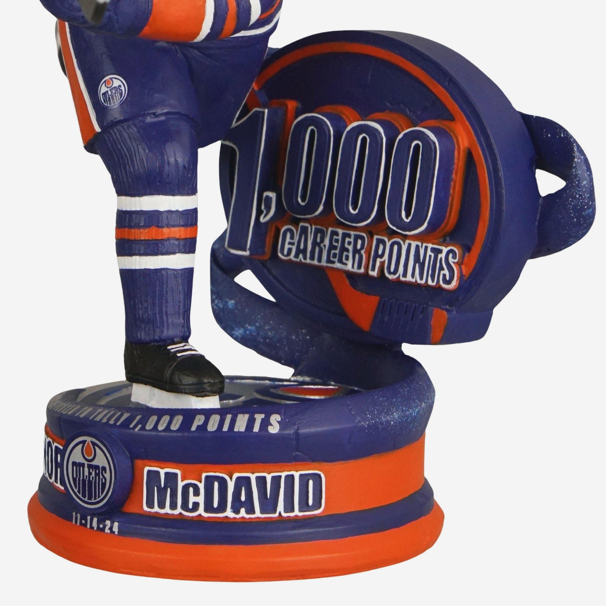 - “FOURTH-FASTEST NHL PLAYER TO TALLY 1,000 POINTS” text display on top of base, putting his historical milestone in the proper context