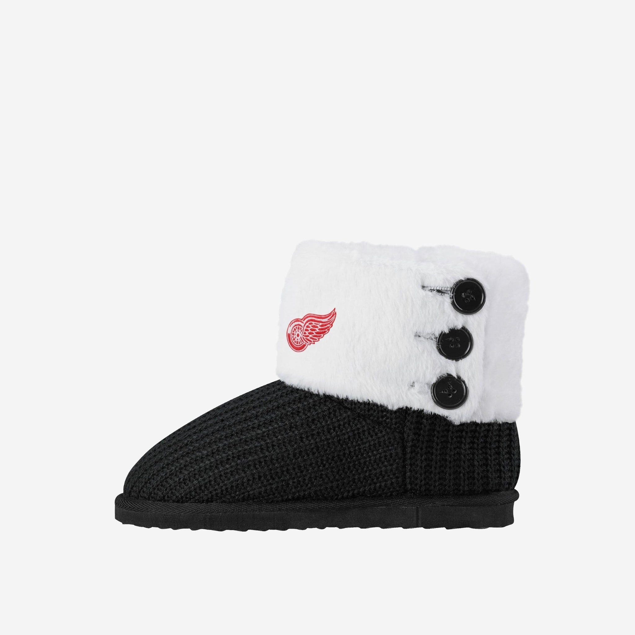 These Detroit Red Wings Knit High End Button Boot Slippers are perfect for rocking your team spirit from head to toe, or keeping yourself warm and comfortable while you sneak downstairs for that secret midnight snack. No judgment here.