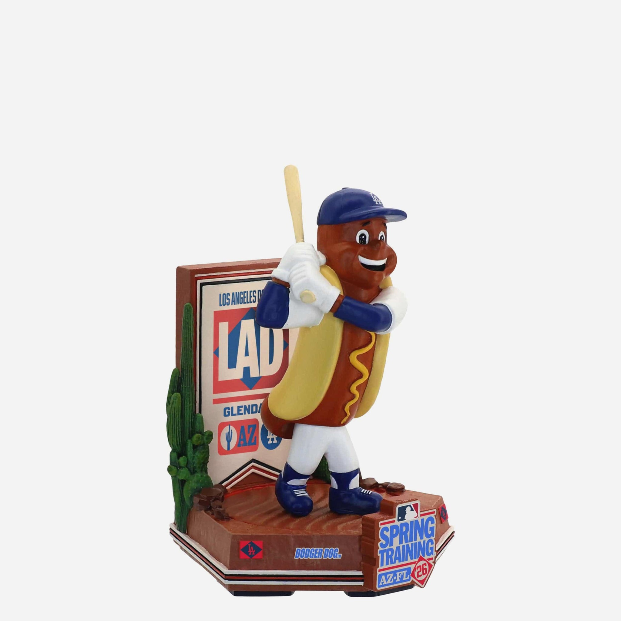 Bring the desert vibes of preseason baseball to your collection with the Dodger Dog Los Angeles Dodgers 2026 Spring Training Cactus League Mascot Mini Bighead Bobblehead, celebrating the road to Opening Day in iconic Arizona style.