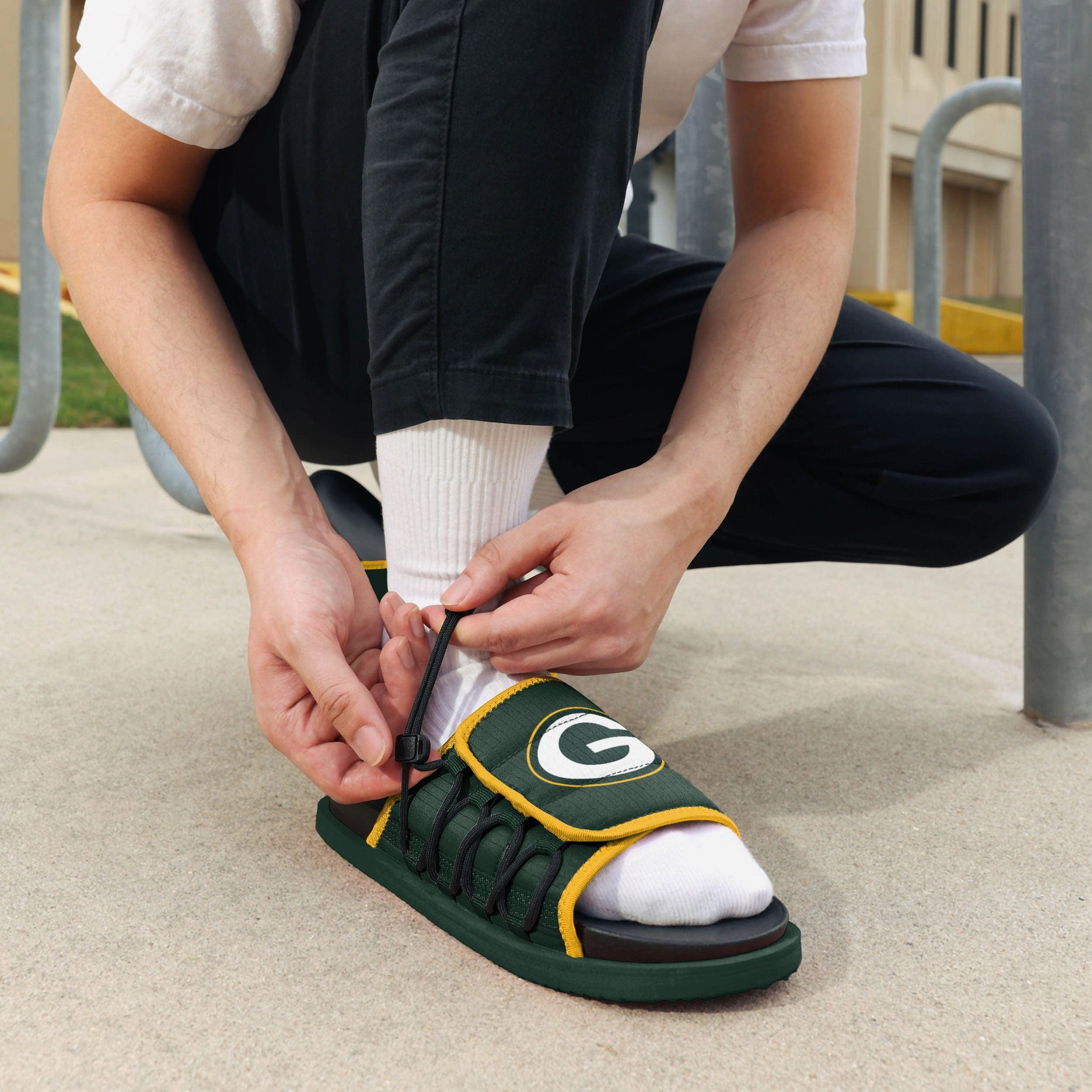 The future of fan footwear is now. Treat your feet to a new level of comfort with the Green Bay Packers Future Slide Flip Flops.