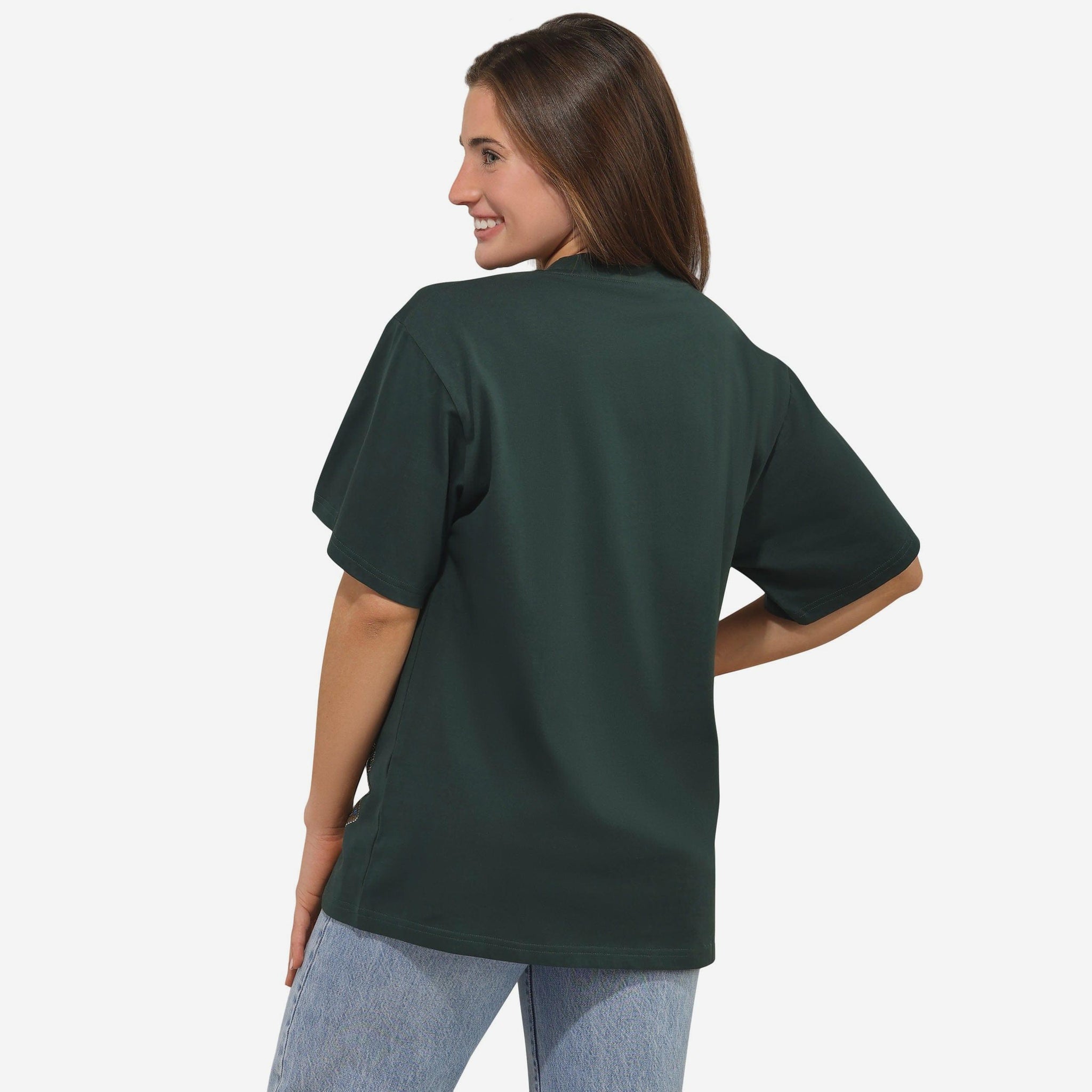 Green Bay Packers Womens Rhinestone Logo Oversized Holiday T-Shirt