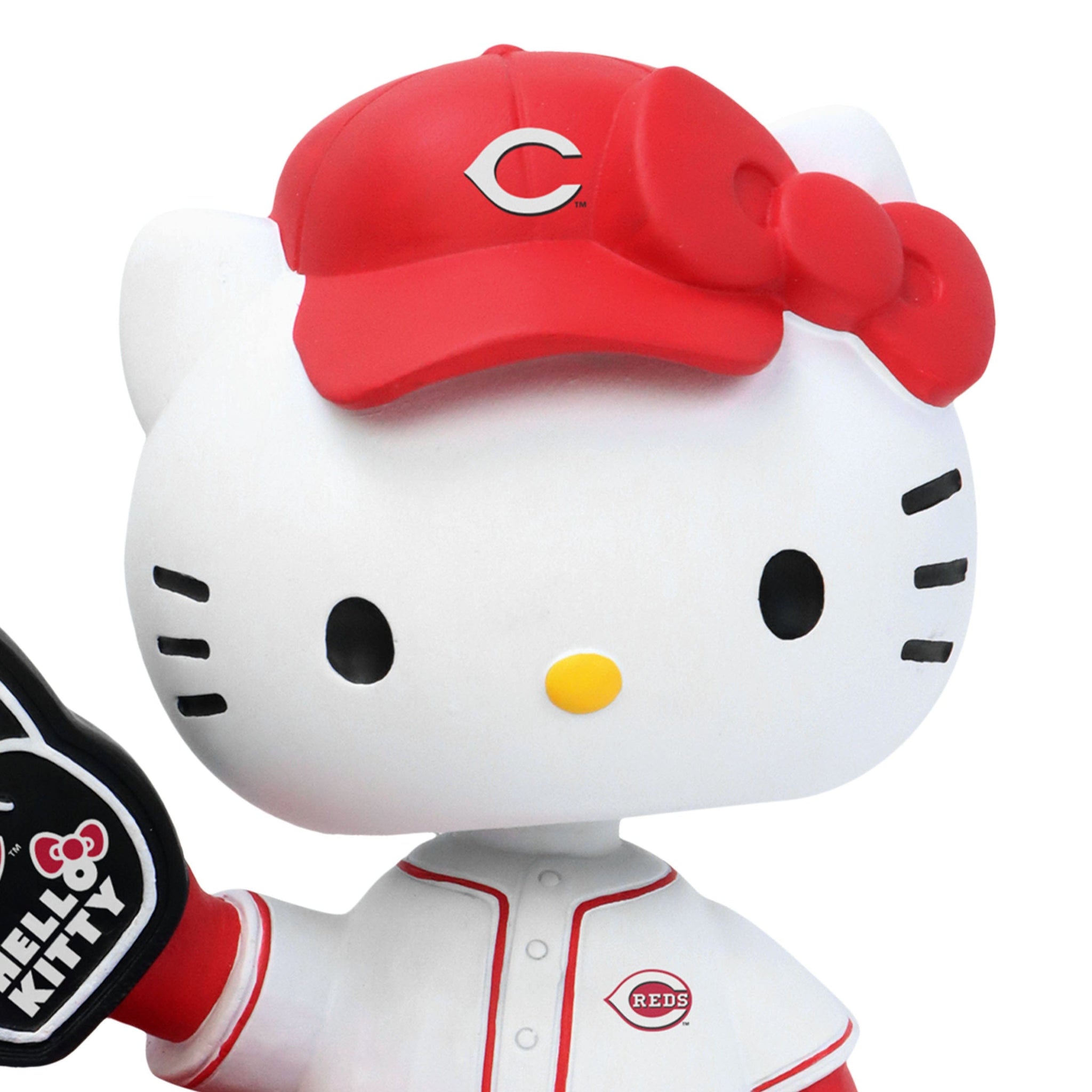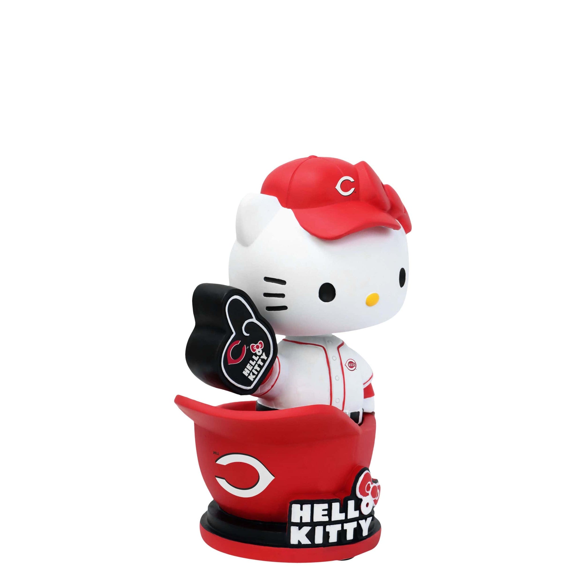 Bring adorable charm to the ballpark! Celebrate your favorite baseball team in fun, collectible style with this Cincinnati Reds Hello Kitty® Baseball Helmet Bobblehead.