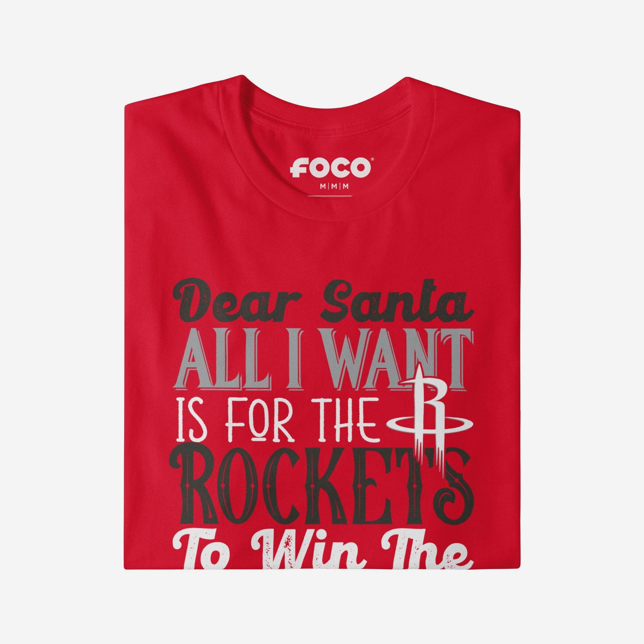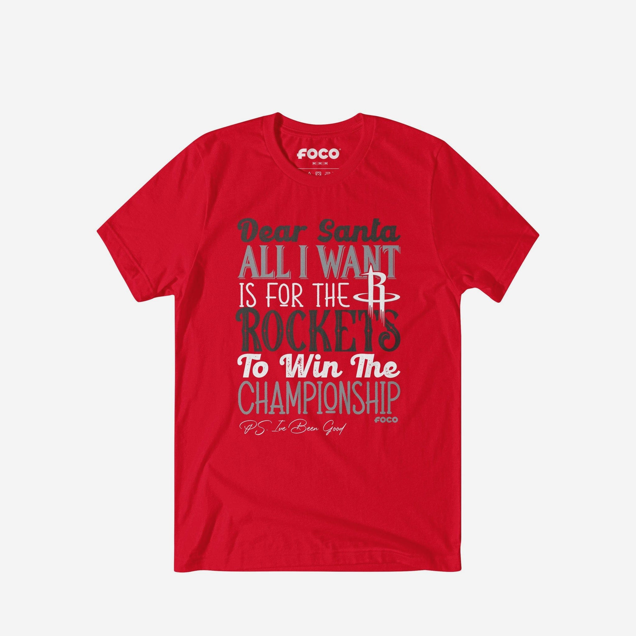 • Festive, team-colored design: This traditional t-shirt shows off the official Houston Rockets colors in an all-over design with a festive message to Santa, so you can combine your team spirit with holiday spirit.