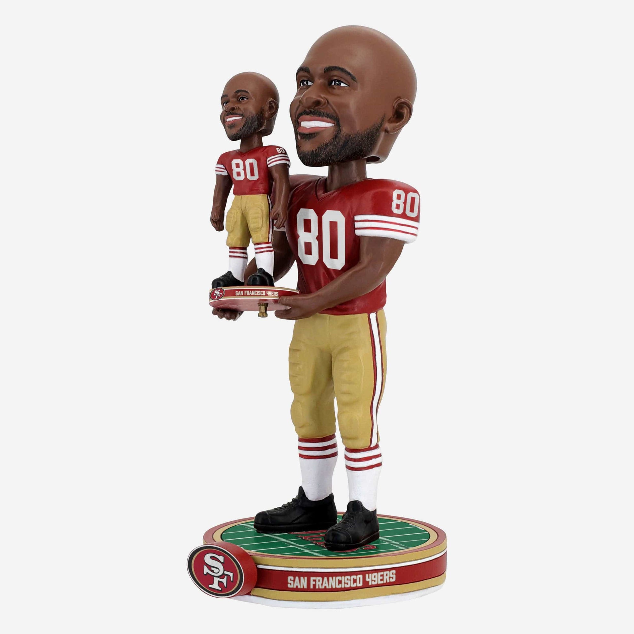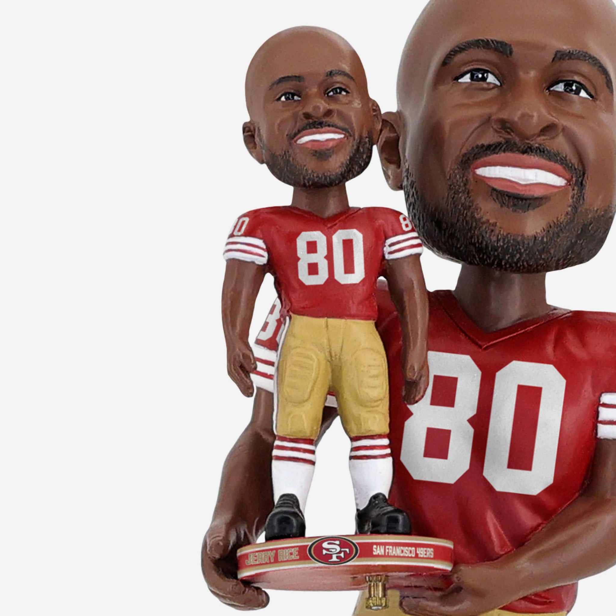 Your favorite star, times two! Make your display twice as legendary with the Jerry Rice San Francisco 49ers Bobble Dubblz Bobblehead.