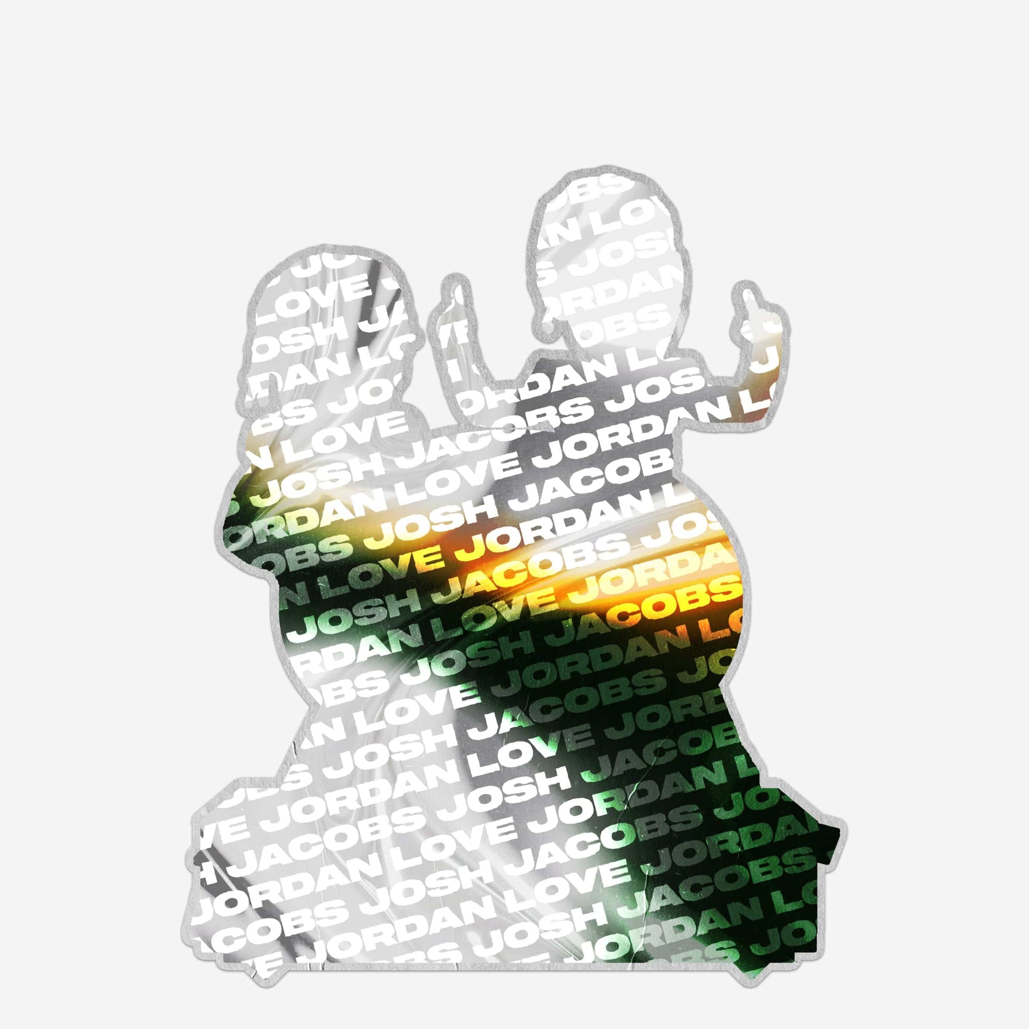 • Portrays Jordan Love and Josh Jacobs wearing their gameday uniforms in celebratory poses, ready to bring the white out and the win to your fancave