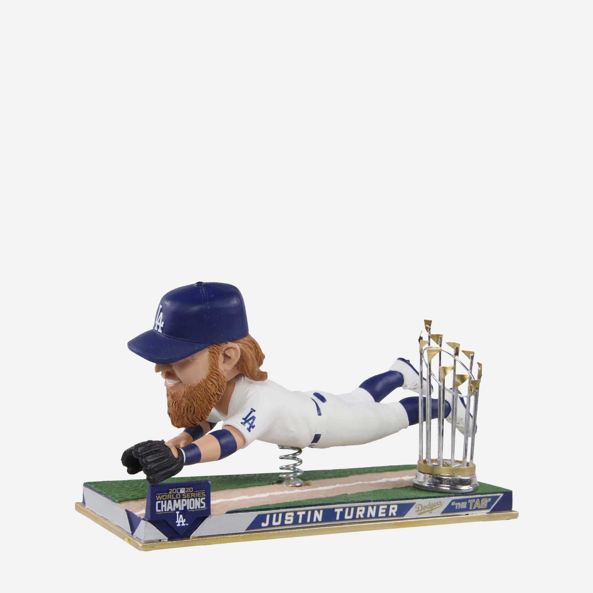 Baserunners beware! Dive into the deep end of Dodgers champ fandom by adding this Justin Turner Los Angeles Dodgers 2020 World Series Champions Diving Tag Bobblehead to your lineup!