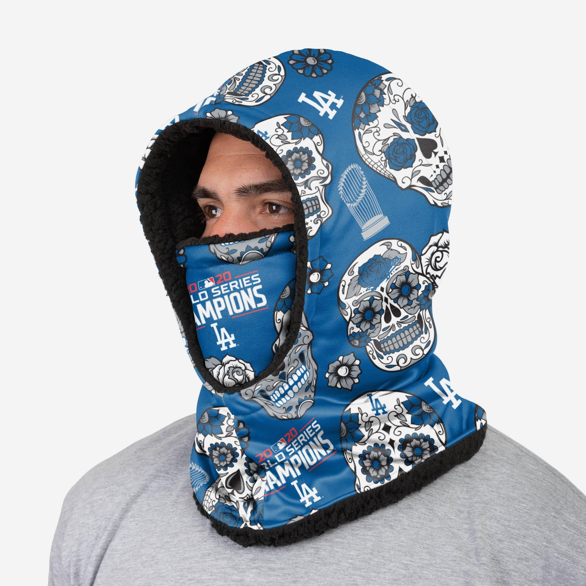 It's all good in a championship hood! Stay warm, look cool, and rep the champs wherever you go with this Los Angeles Dodgers 2020 World Series Champions Day of the Dead Hooded Gaiter!