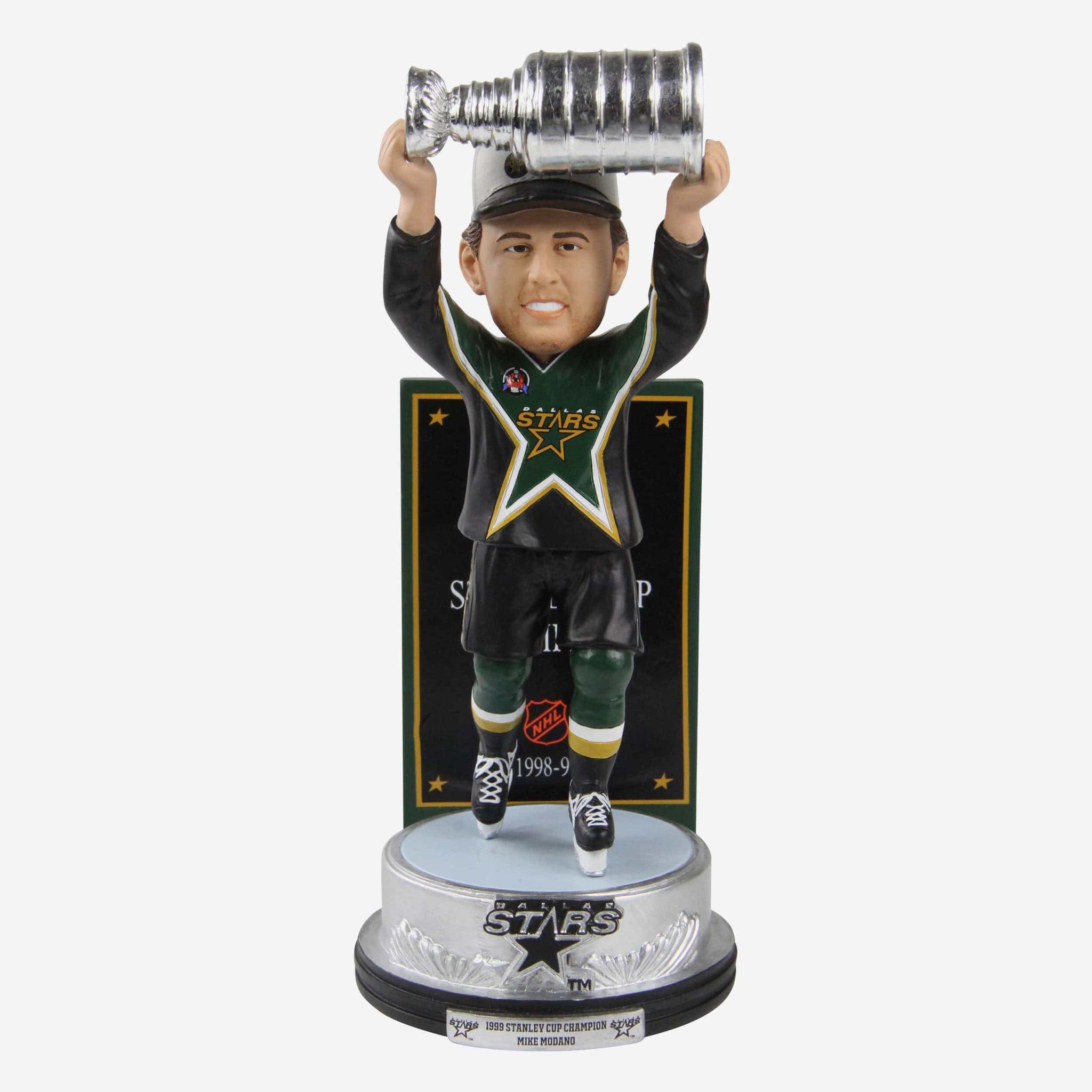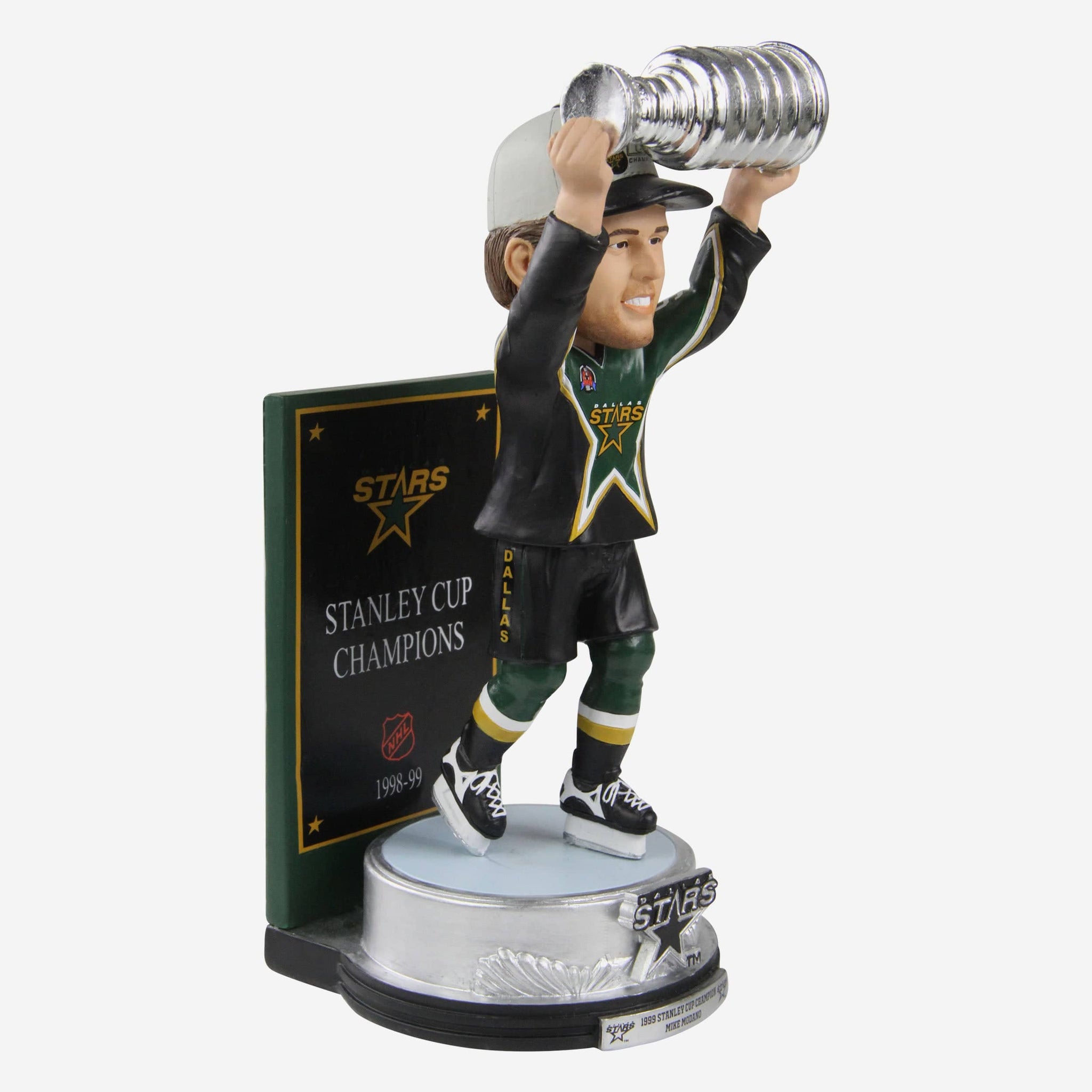 • Portrays Modano wearing his green and black gameday uniform and championship cap while lifting the Stanley Cup trophy, because no championship celebration is complete without a little hardware