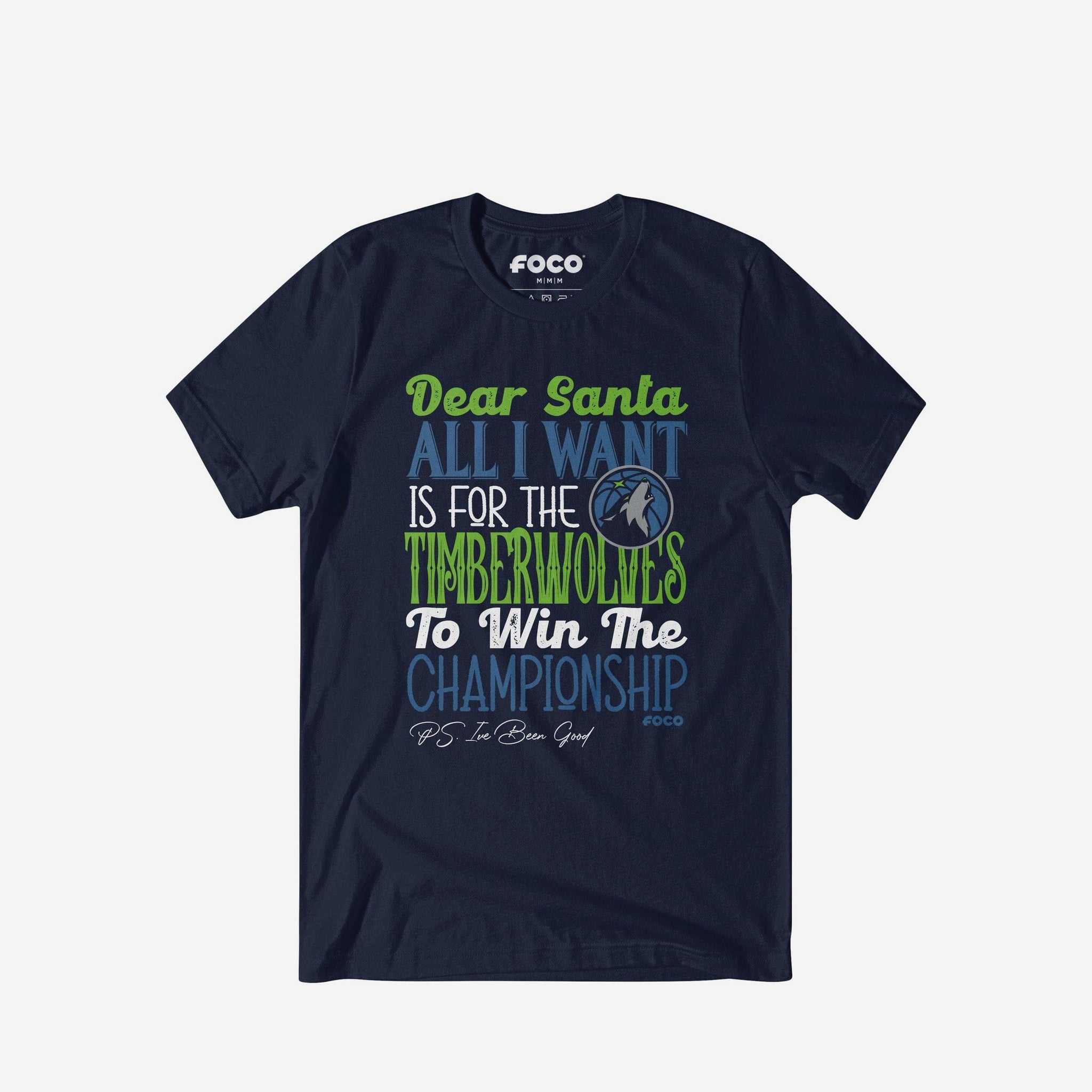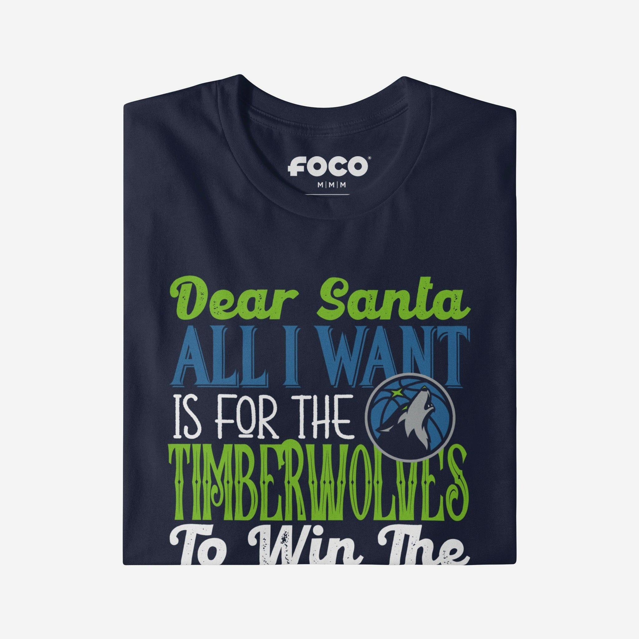 • Festive, team-colored design: This traditional t-shirt shows off the official Minnesota Timberwolves colors in an all-over design with a festive message to Santa, so you can combine your team spirit with holiday spirit.