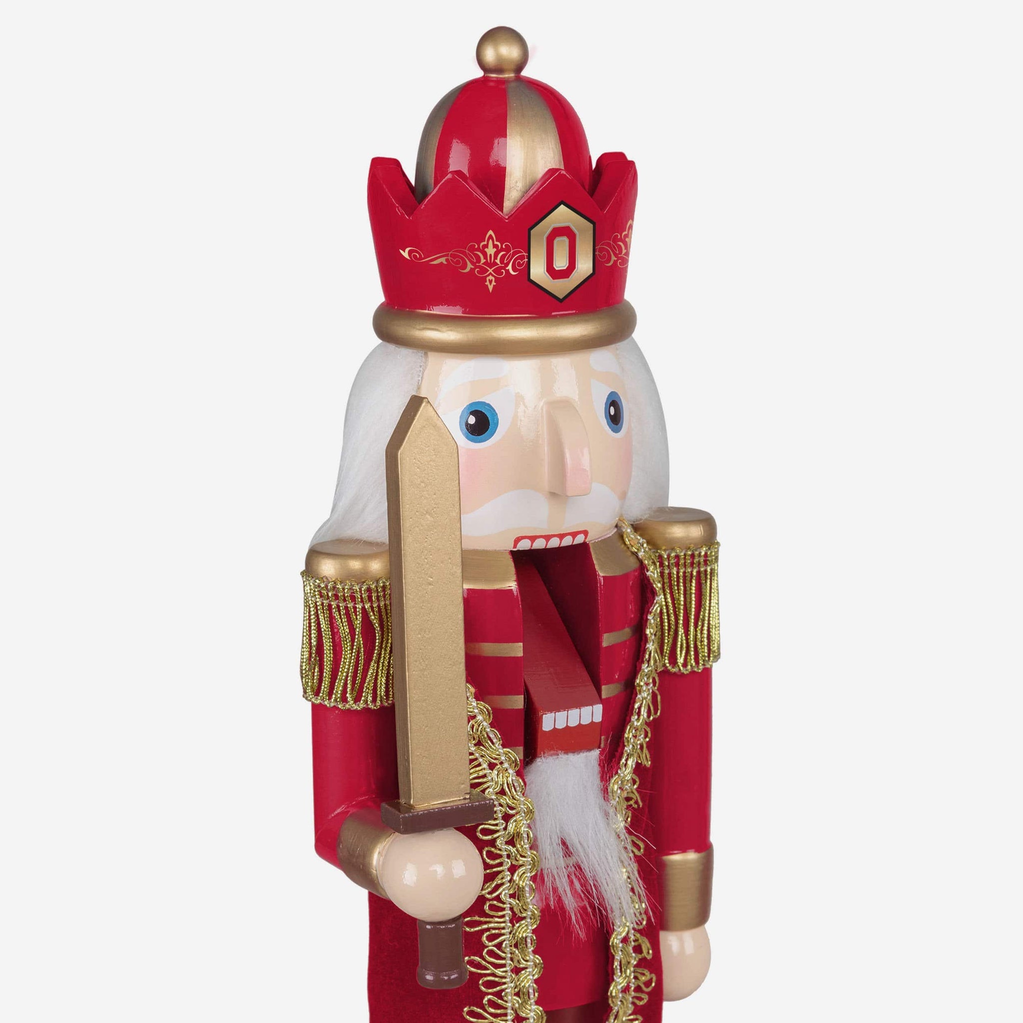 • Team-colored outfit with gold embroidery accents, because this holiday nutcracker is as good as gold