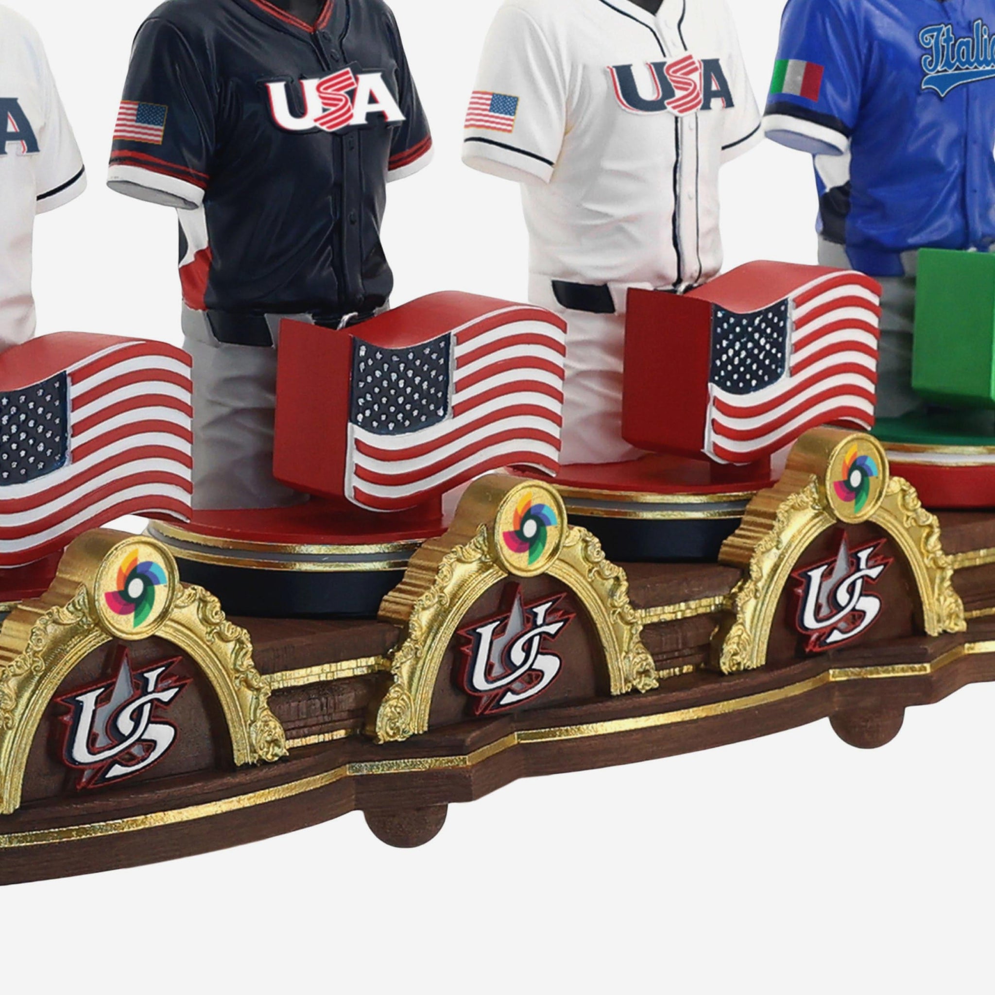 - Country flag accents displayed on the front of each bust to highlight the nation each player represents