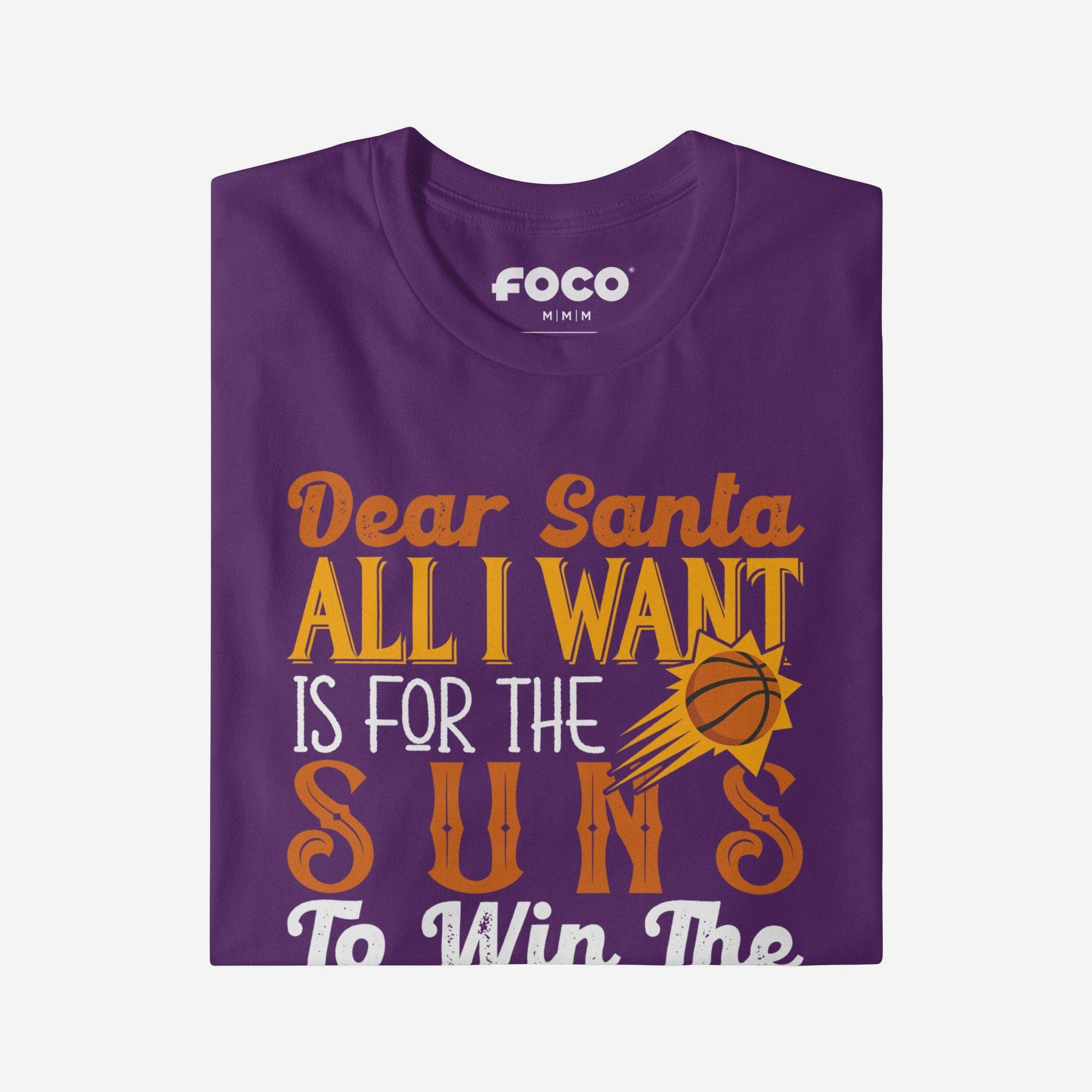 • Festive, team-colored design: This traditional t-shirt shows off the official Phoenix Suns colors in an all-over design with a festive message to Santa, so you can combine your team spirit with holiday spirit.