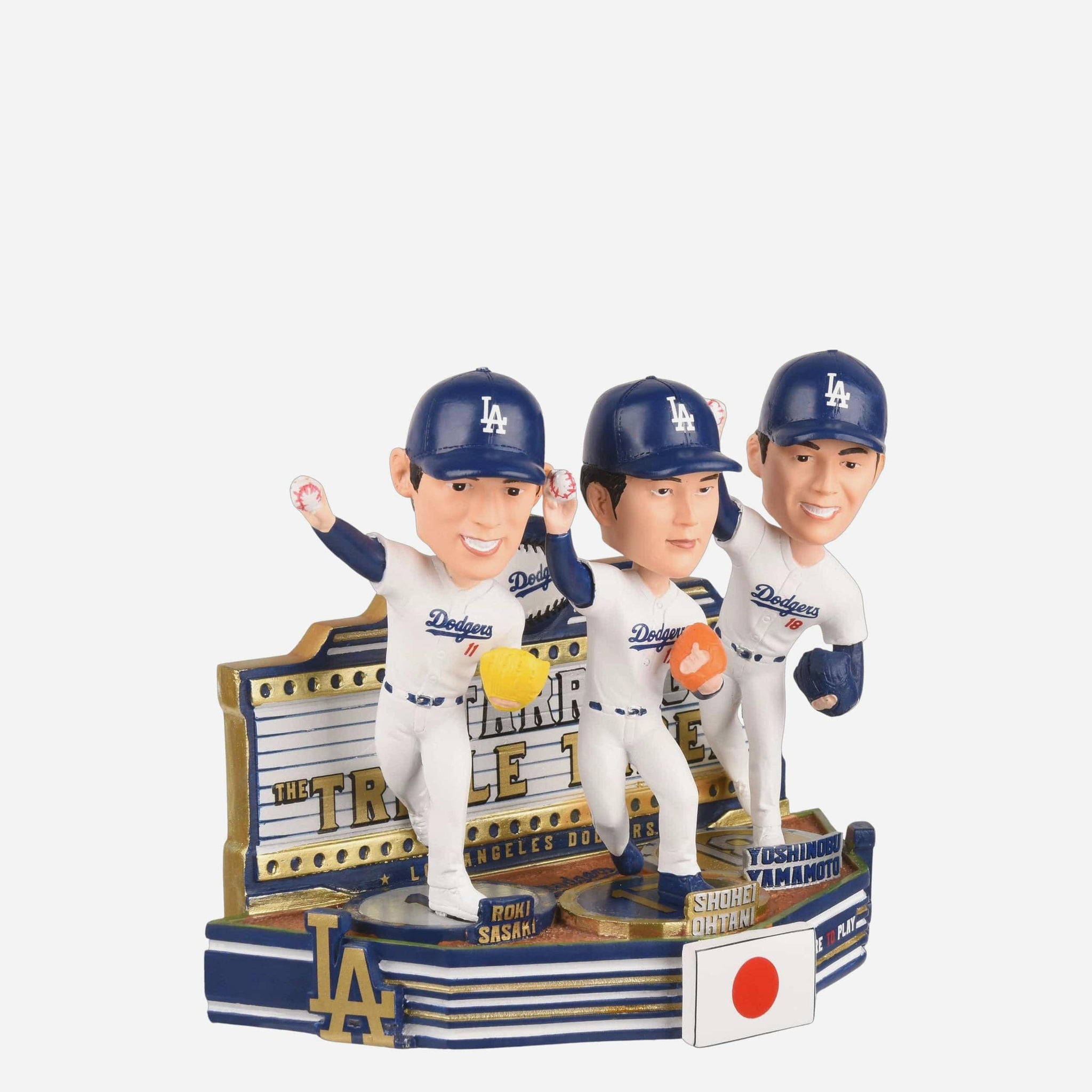 A true triple threat on the mound! No matter who you roll with, this Roki Sasaki & Shohei Ohtani & Yoshinobu Yamamoto Los Angeles Dodgers Japan's Big Arms Bobblehead will be the centerpiece of your fancave.