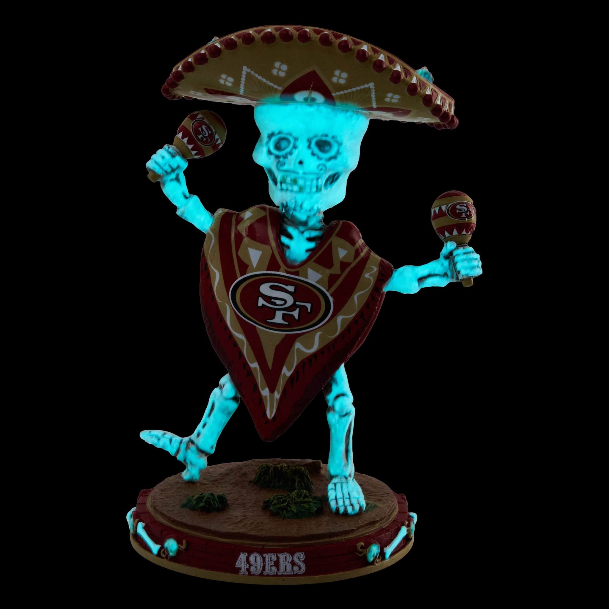 Is your Dia de los Muertos in need of a glow-up? You've come to the right place. Get the party going and bring some fandom to the festivities with this San Francisco 49ers Calavera Glow in the Dark Bobblehead.