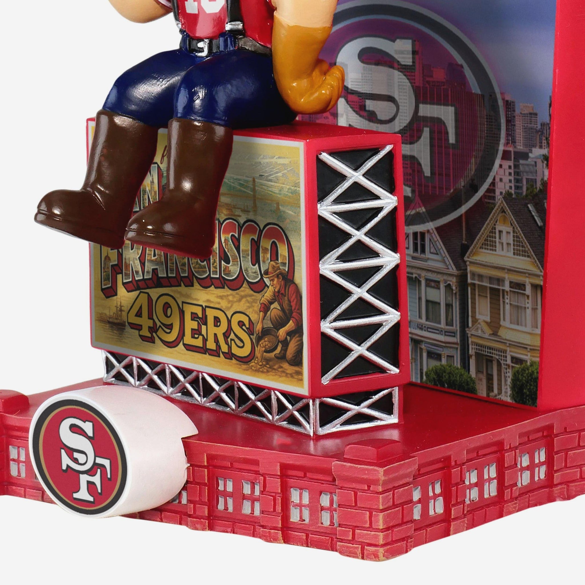 • Bold team logo displays throughout the base and backdrop for unmistakable 49ers pride