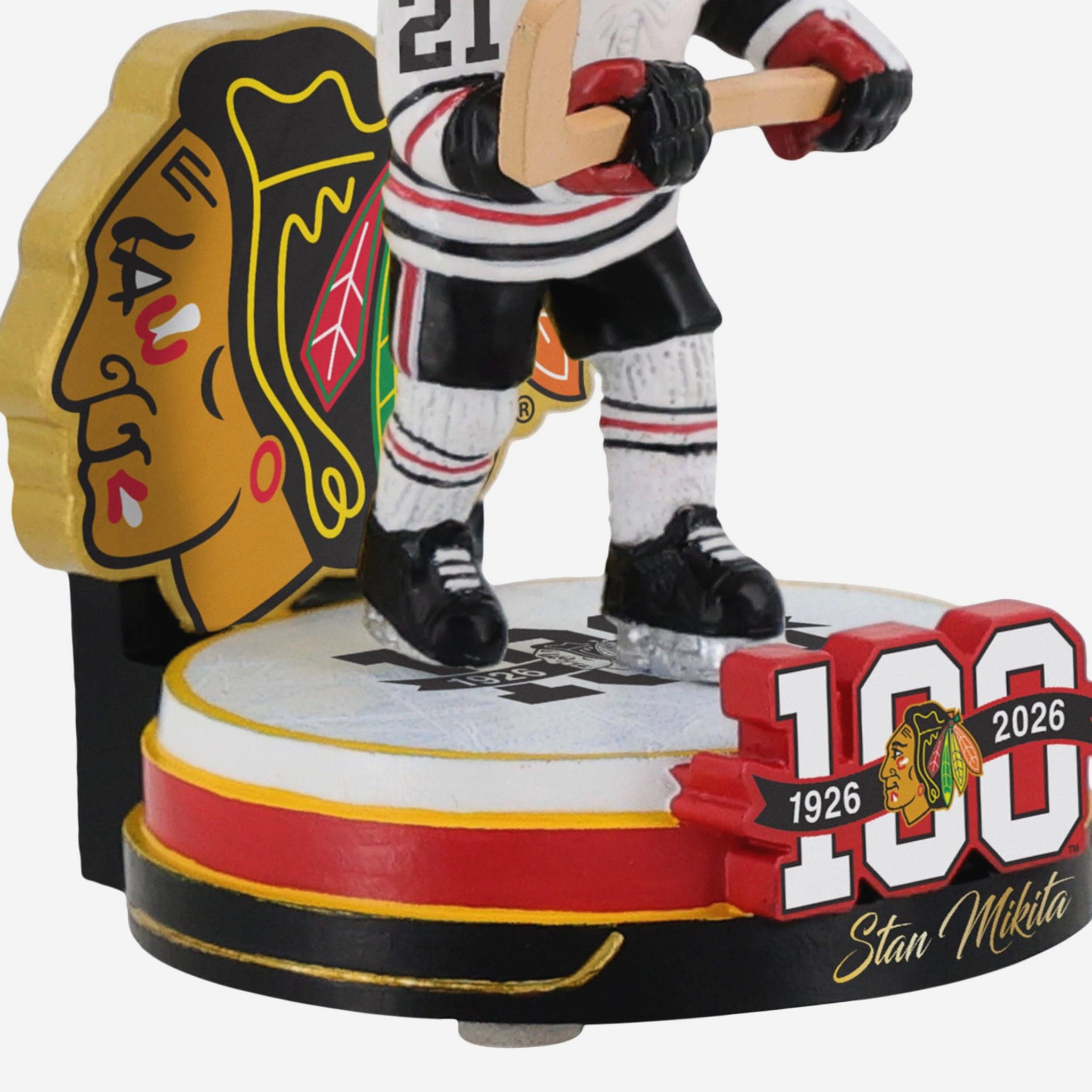 - Portrays Mikita wearing his game day uniform in an action pose, ready to celebrate a century of greatness