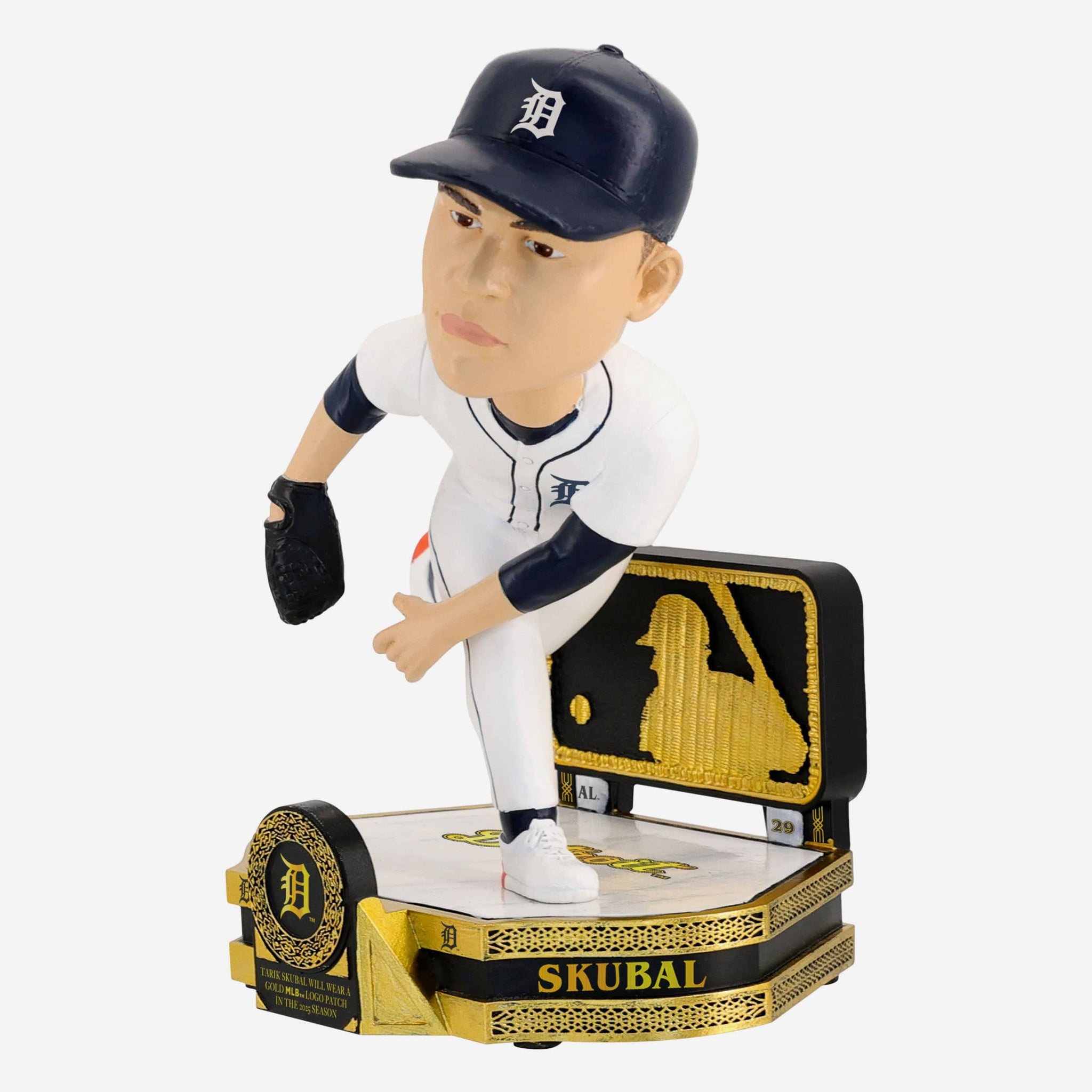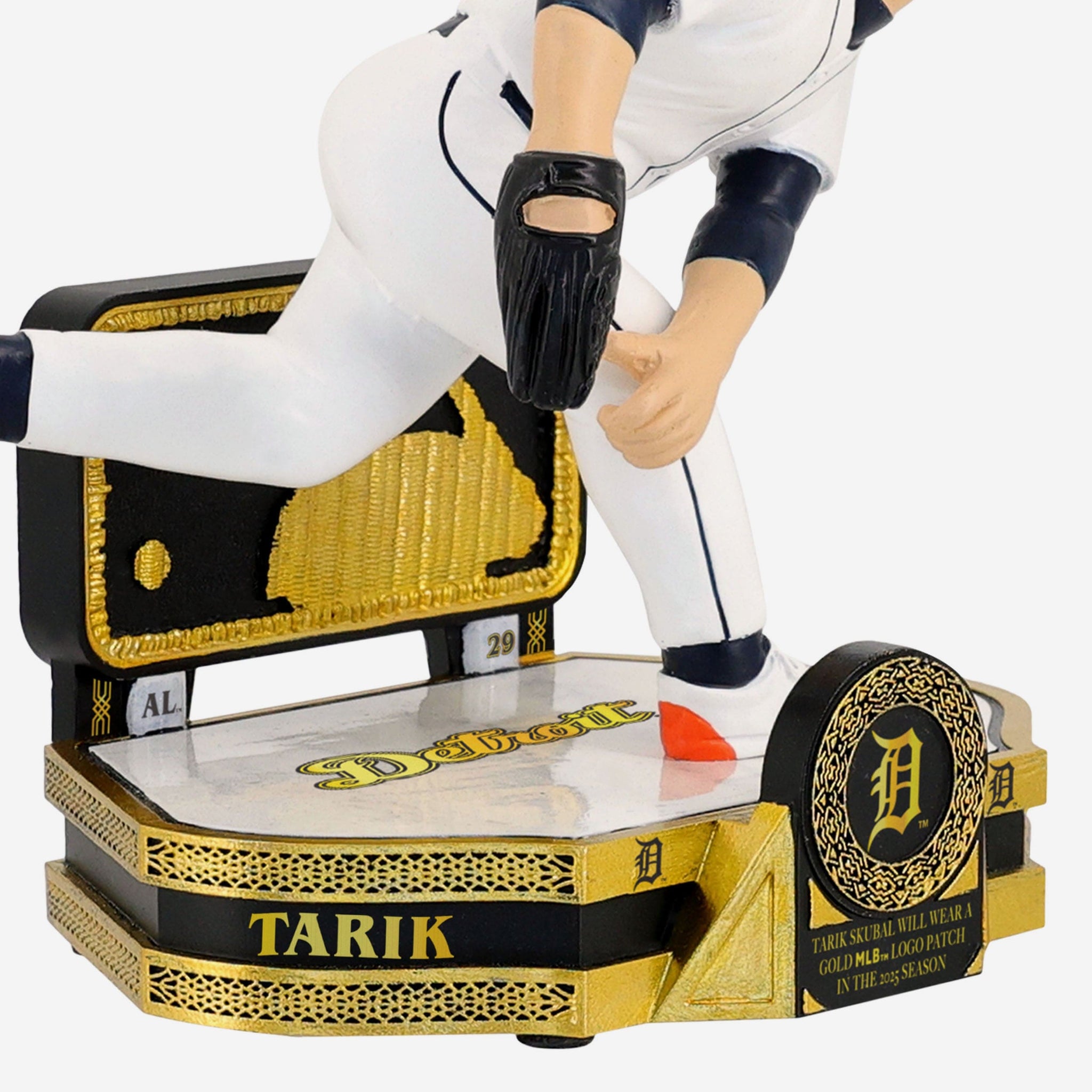 • ”TARIK SKUBAL WILL WEAR A GOLD MLB™ LOGO PATCH IN THE 2025 SEASON” text display on front of base so you can celebrate this golden achievement