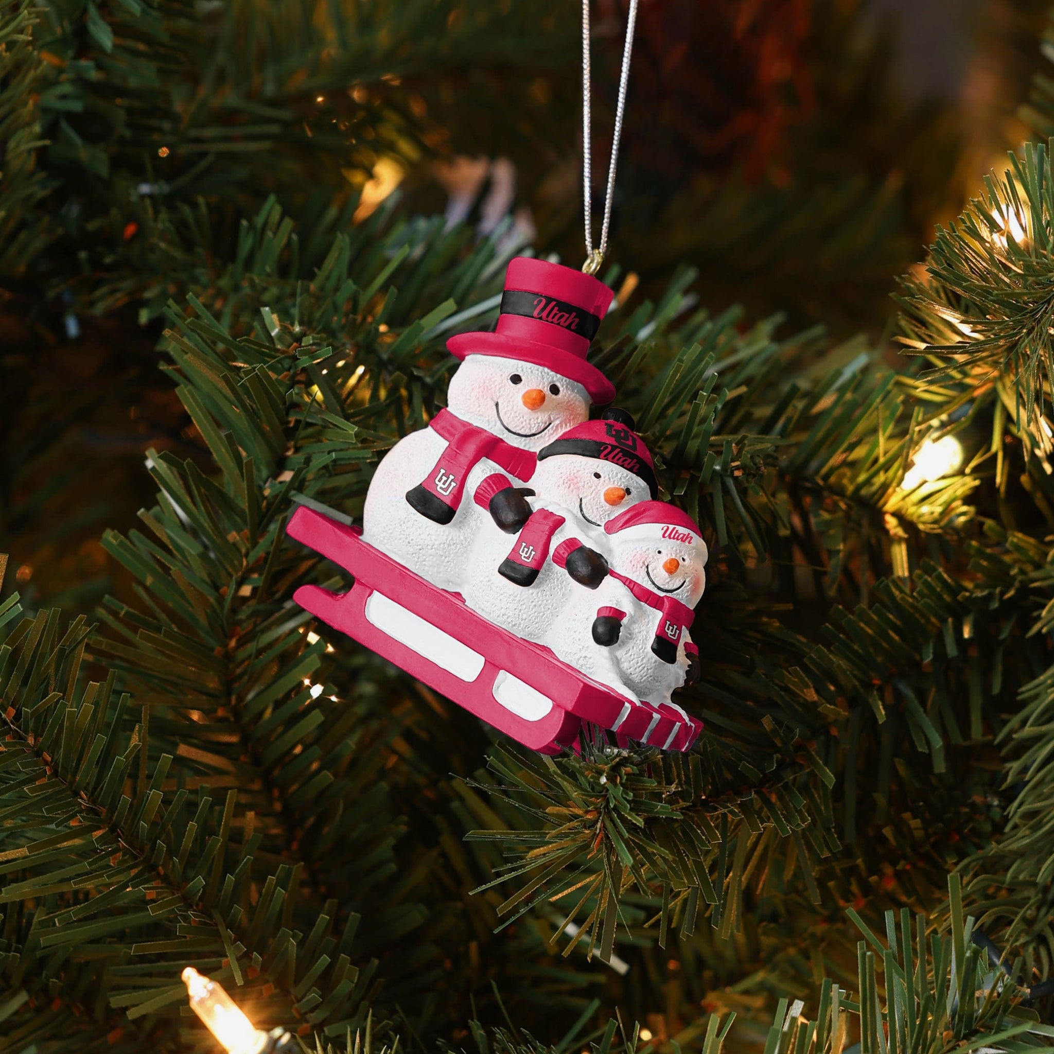 Meet three snowman friends that won't melt when you bring them inside! Introducing the Utah Utes Sledding Snowmen Ornament!