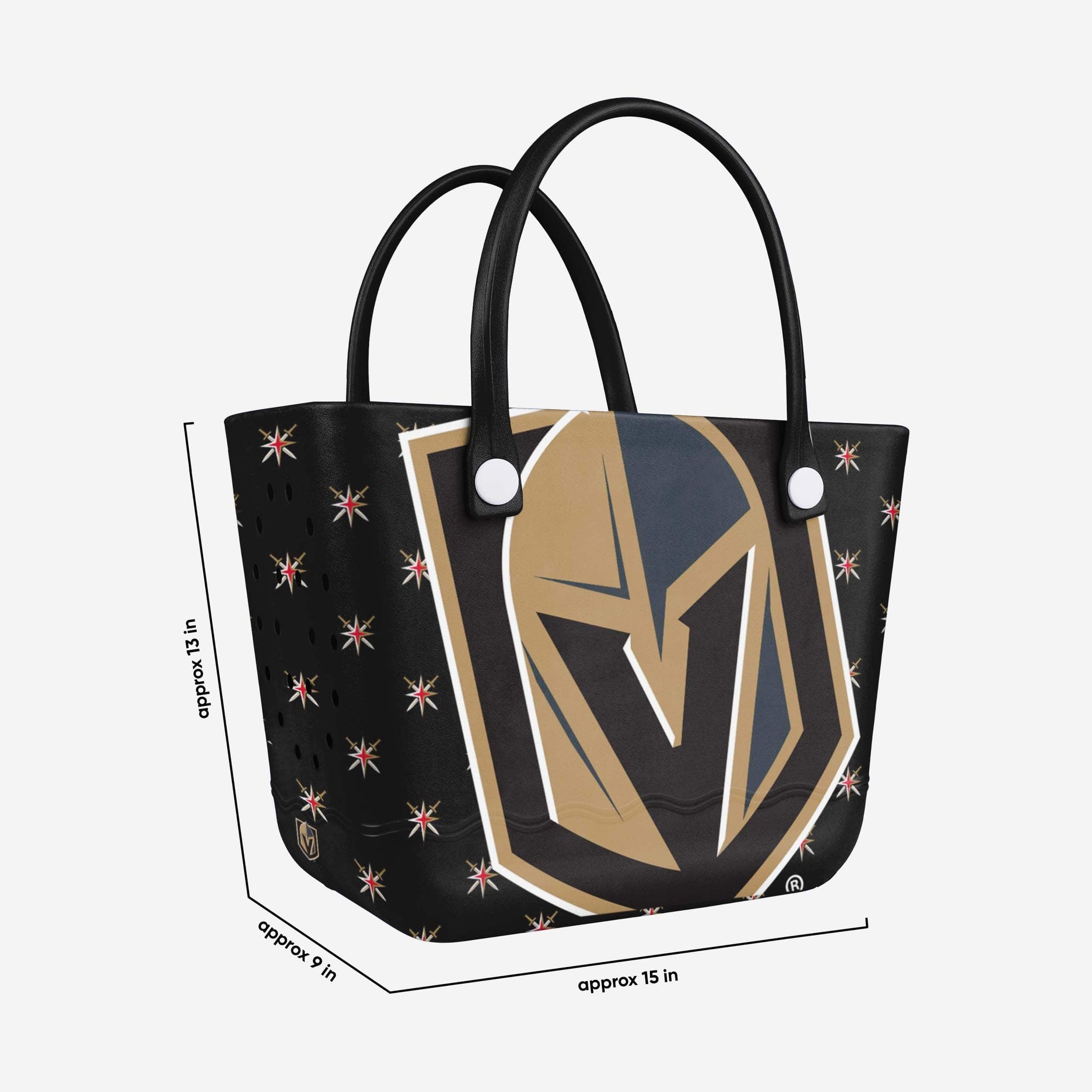 Looking for a bag as durable and dependable as your team spirit? You've found it. Whether you're running the tailgate, hitting the beach, or going on any adventure, pack up your fandom and take it on the go with this Vegas Golden Knights Big Logo Mini Print Tailgate Tote Bag.