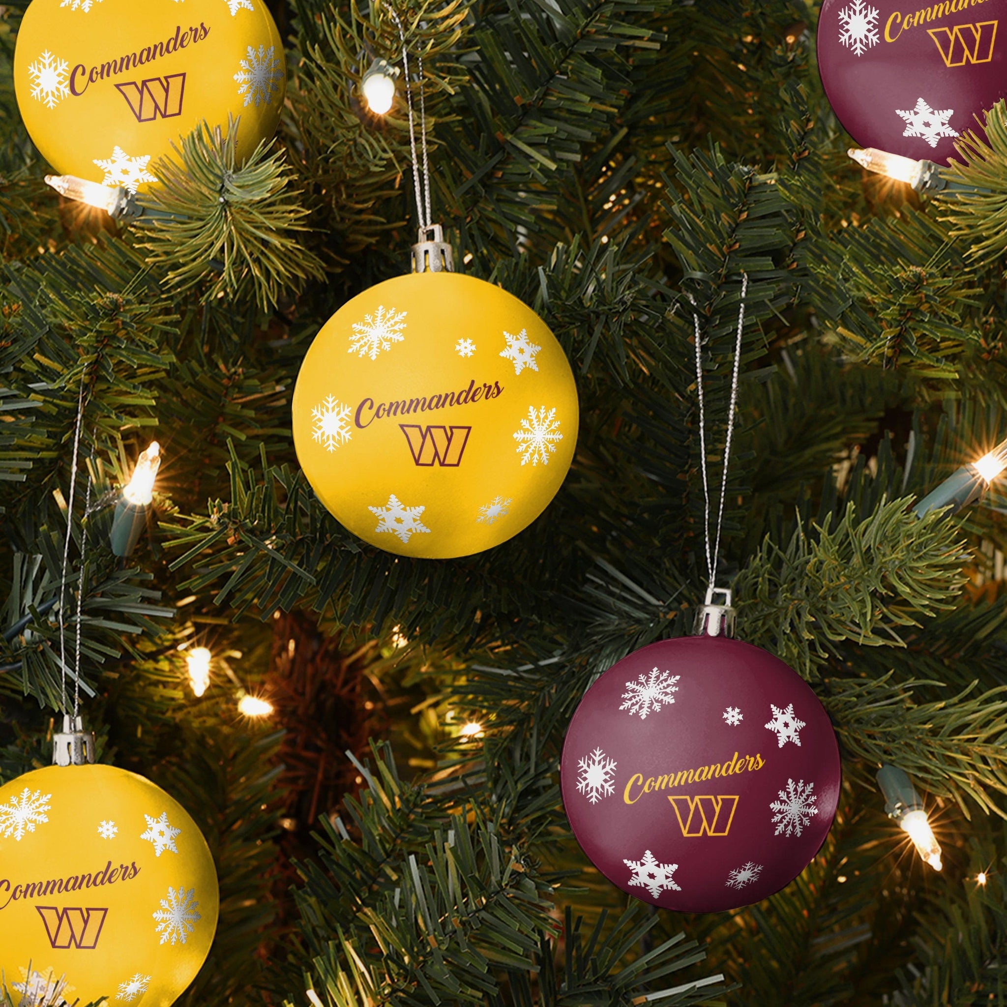 Make sure your holiday decorating is oops-proof with this Washington Commanders 5 Pack Shatterproof Ball Ornament Set! Decking the halls has never been so much fun.