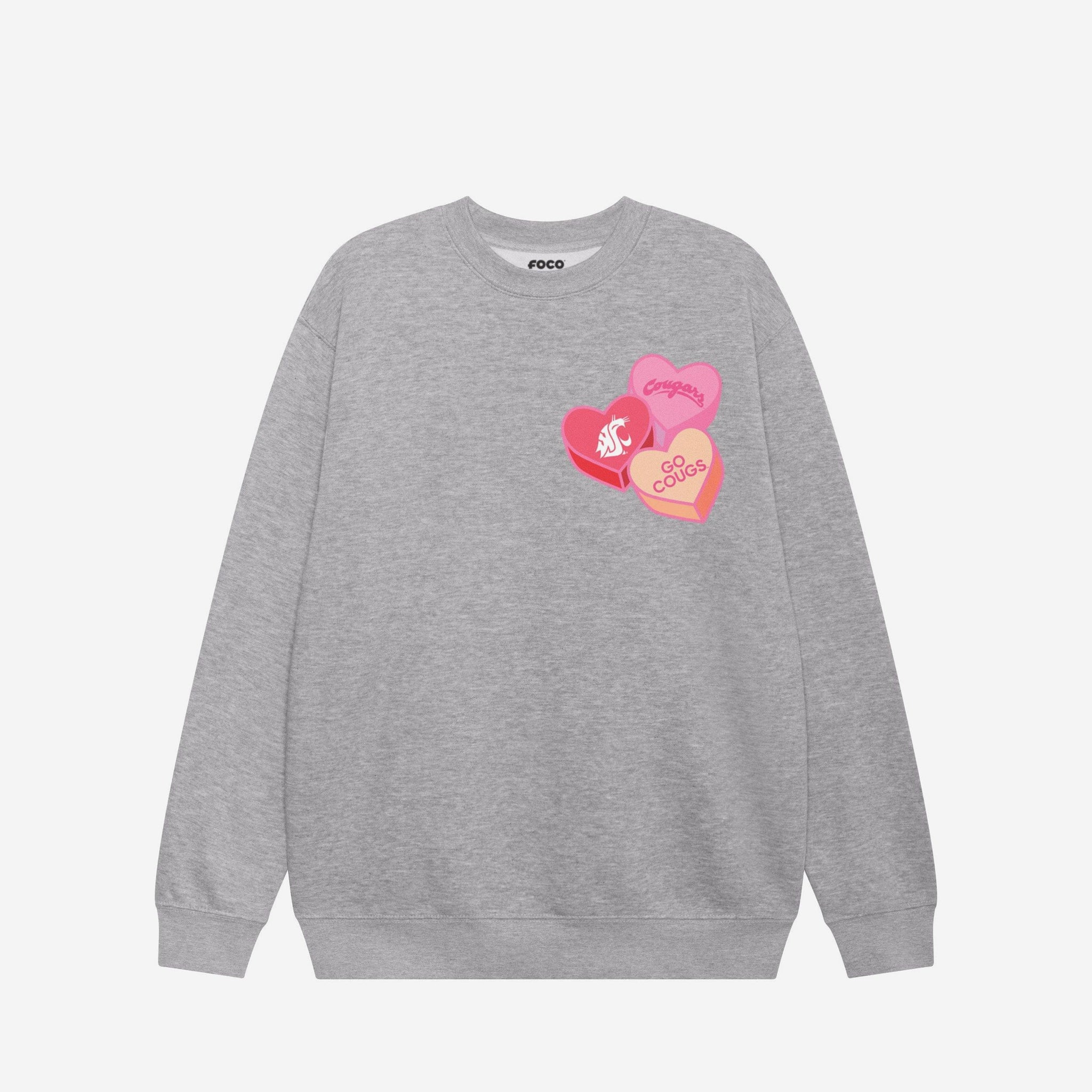 Washington State Cougars Candy Heart Crew Neck Sweatshirt FOCO Athletic Heather S - FOCO.com